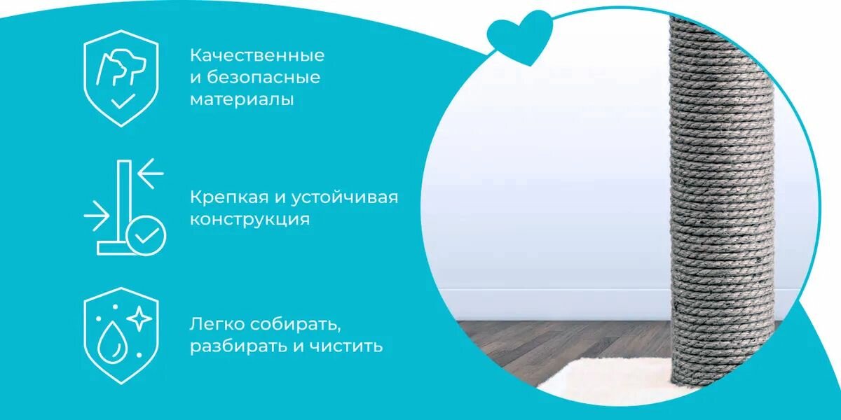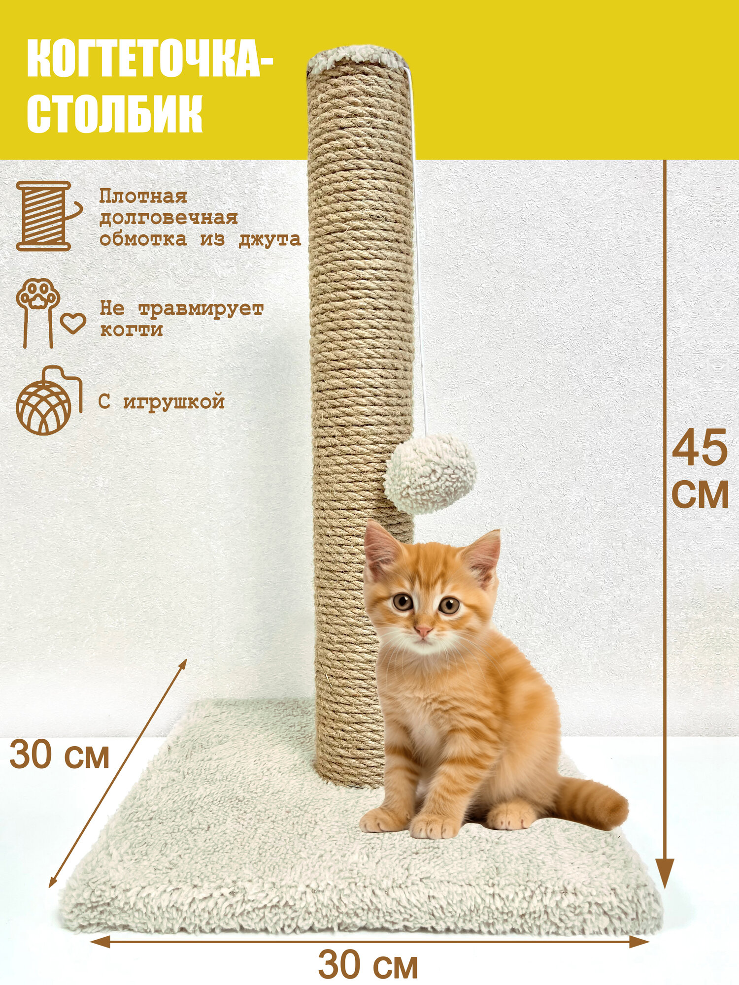 Когтеточка-столбик джутовая 30х30х45 см с игрушкой для кошек (цвет серый) интересное: