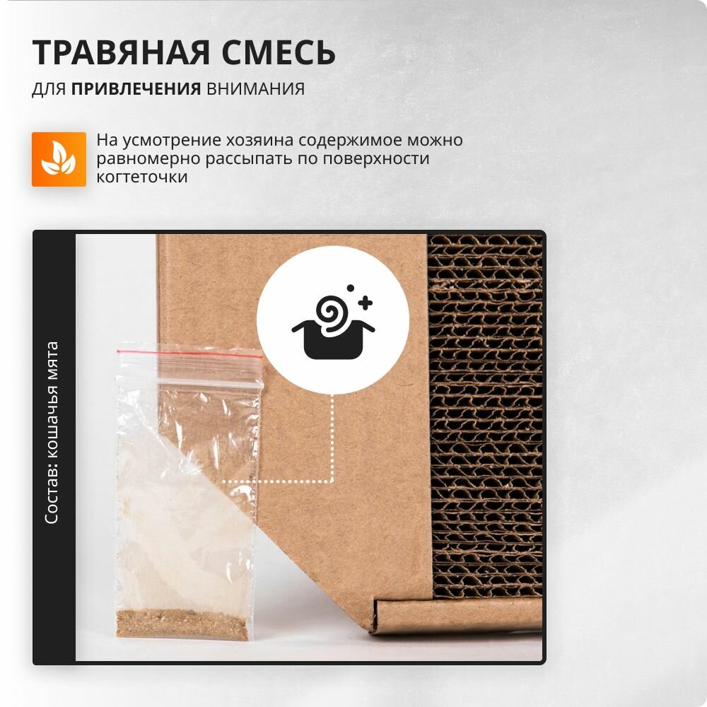 Когтеточка картонная для кошек и котят напольная в комплекте с мятой 49х24 см. (белая)