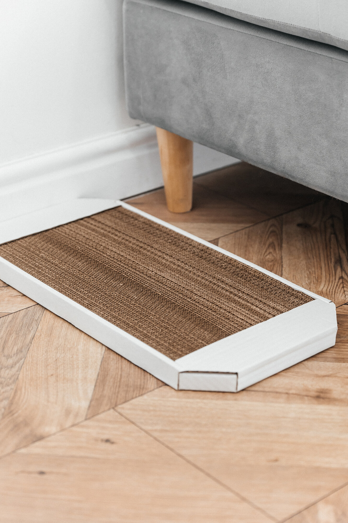 Купить Когтеточка картонная для кошек и котят напольная в комплекте с мятой 49х24 см. (белая)