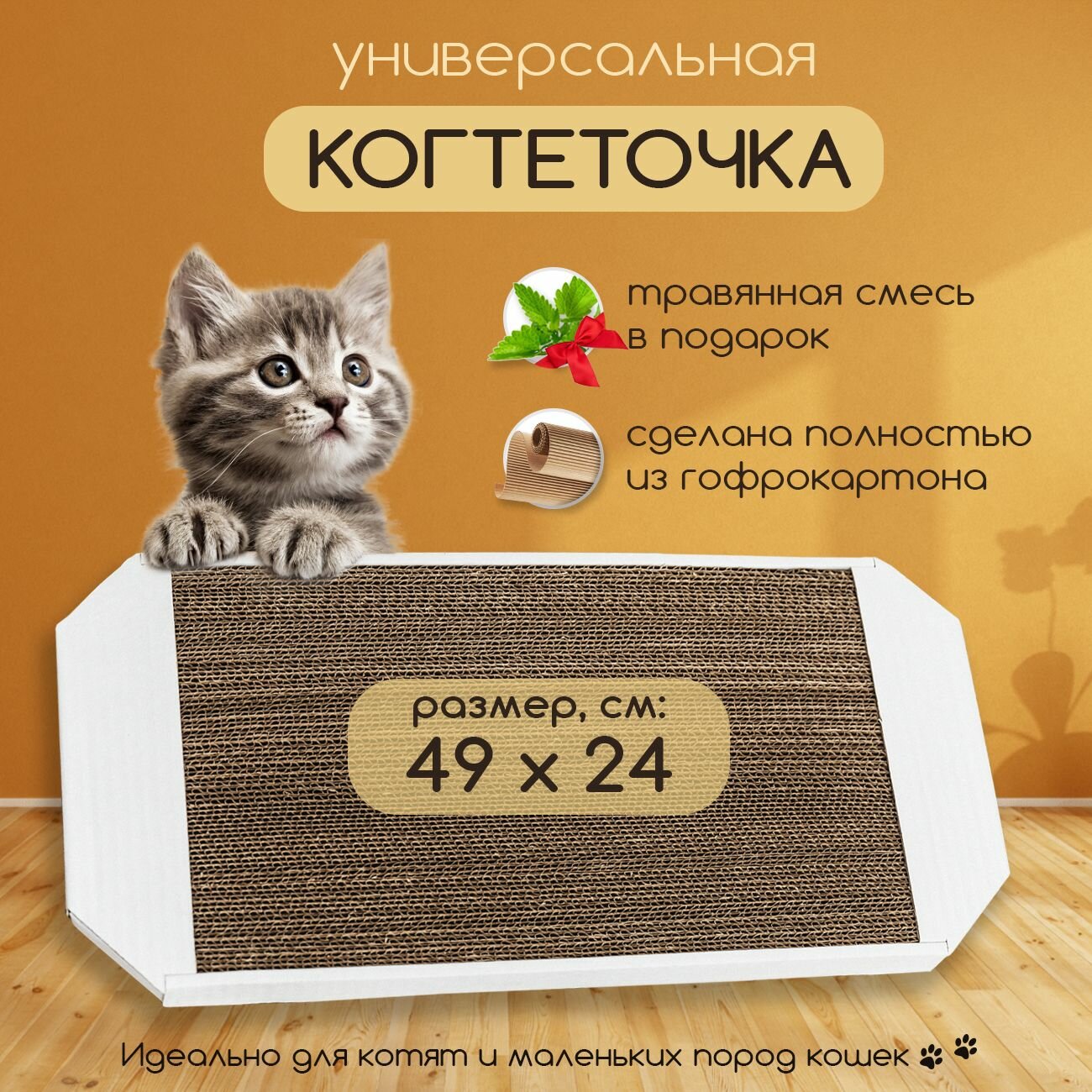 СохранитьКогтеточка картонная для кошек и котят напольная в комплекте с мятой 49х24 см. (белая) интересное: