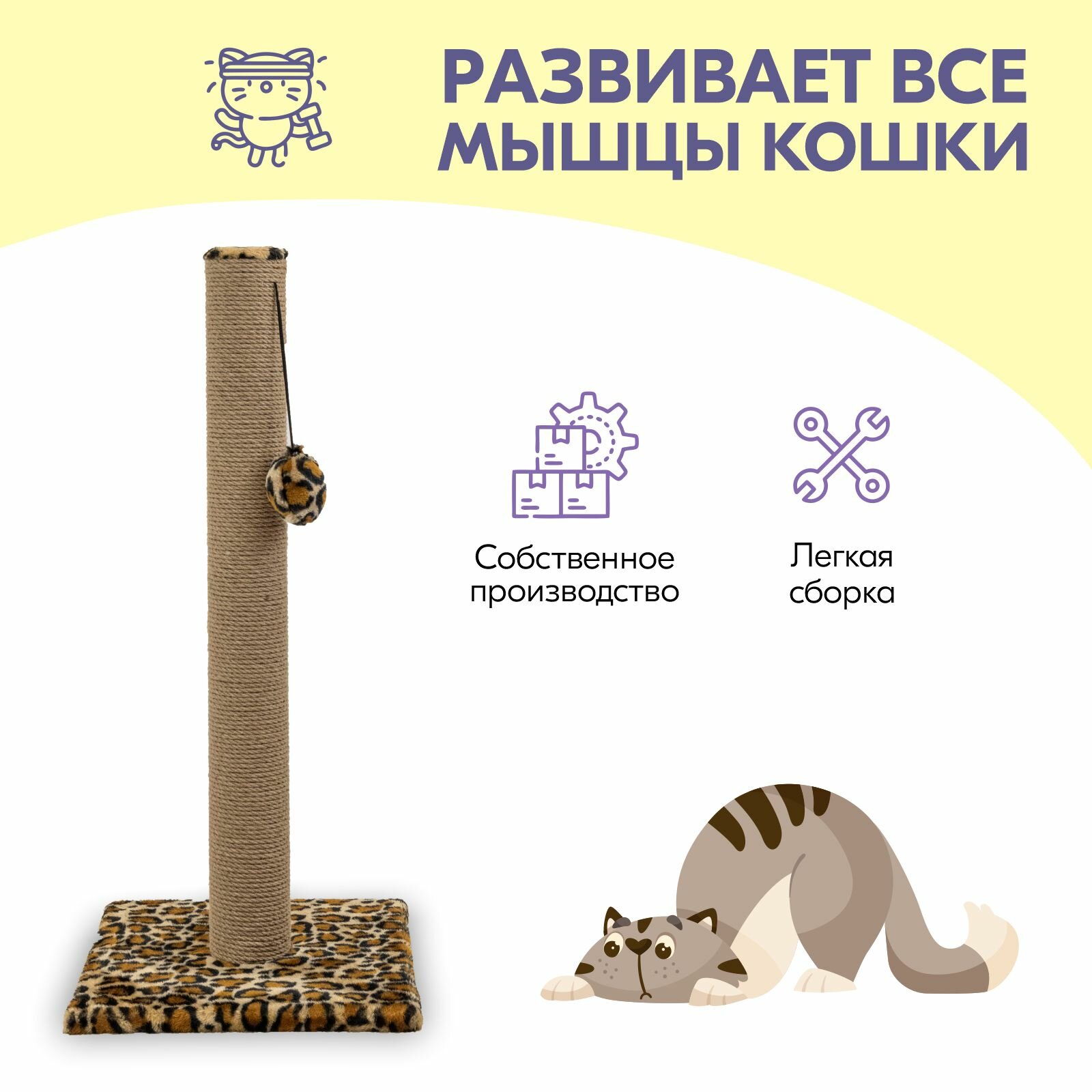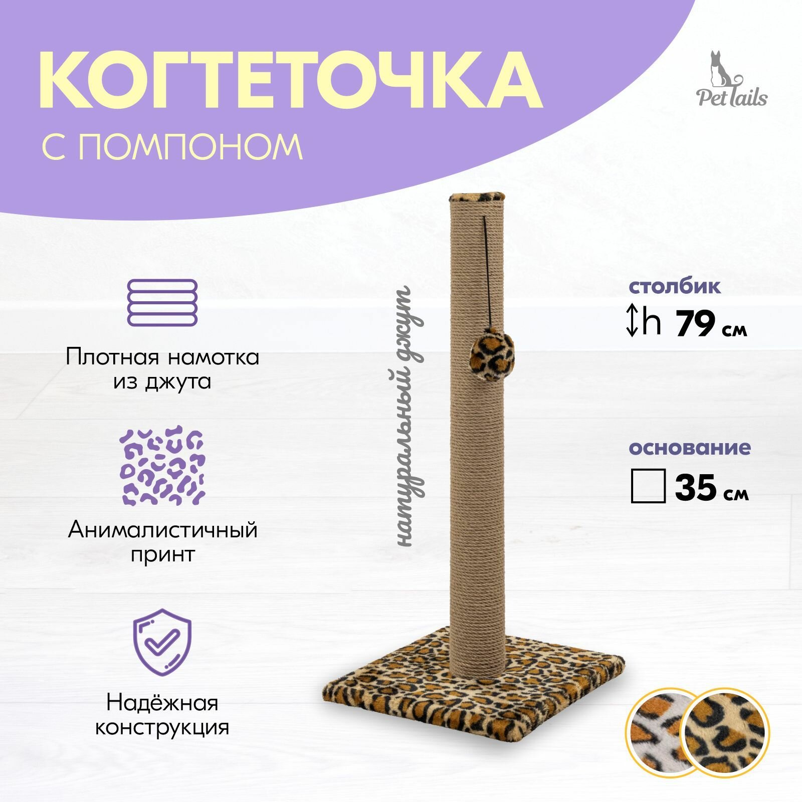 Когтеточка-столбик африка квадратная "PetTails", 35*35*79см (мех, джут) леопард интересное: