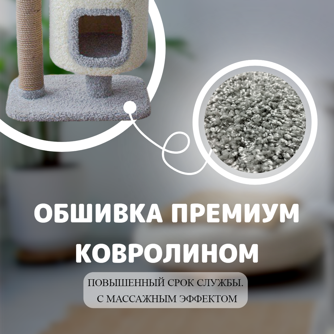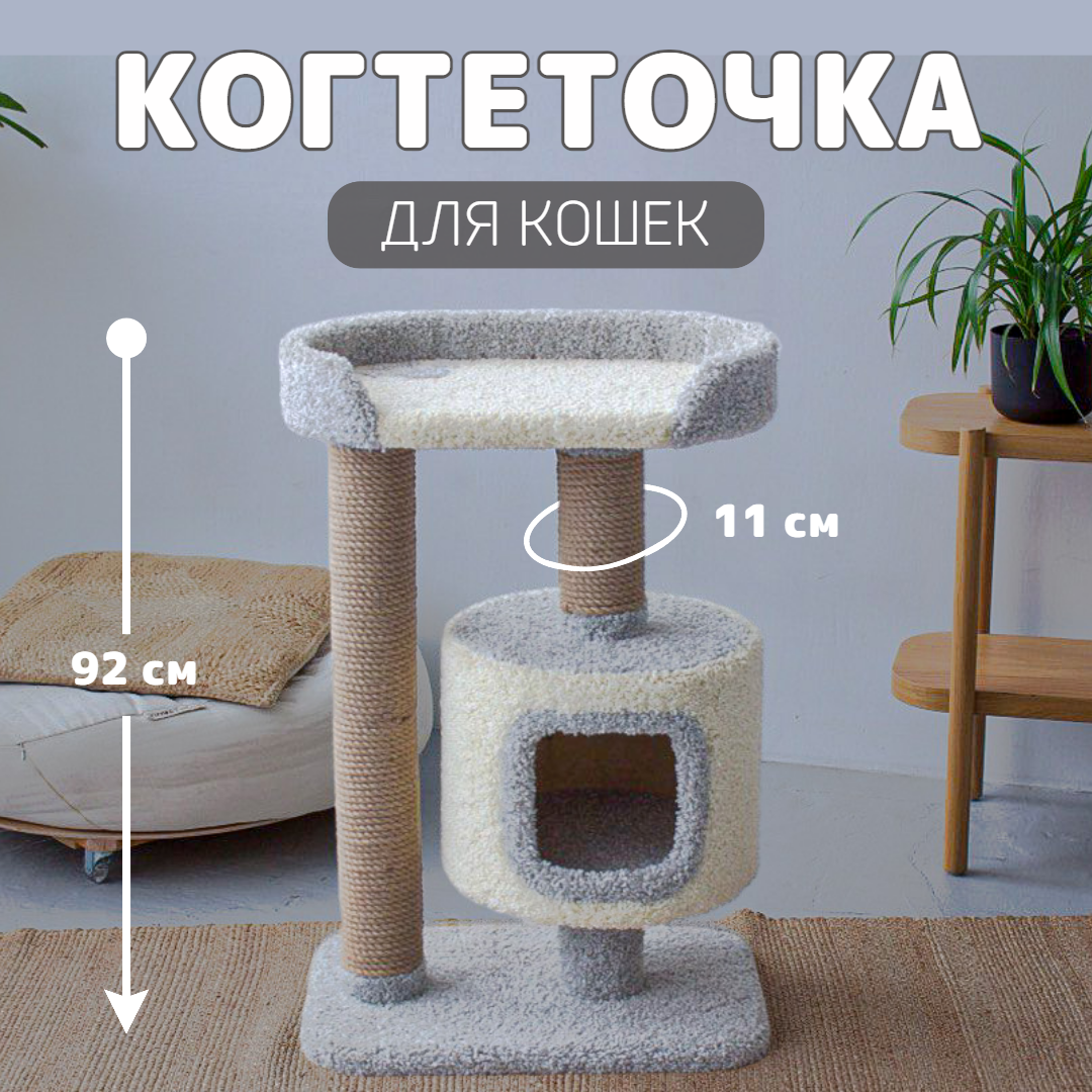 Когтеточка с домиком, Комплекс для кошки Вилла, цвет серый + молочный интересное: