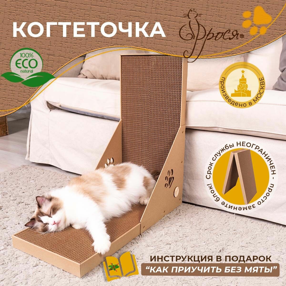 Купить Когтеточка Фрося Уголок картонная для кошки, кота, котенка.