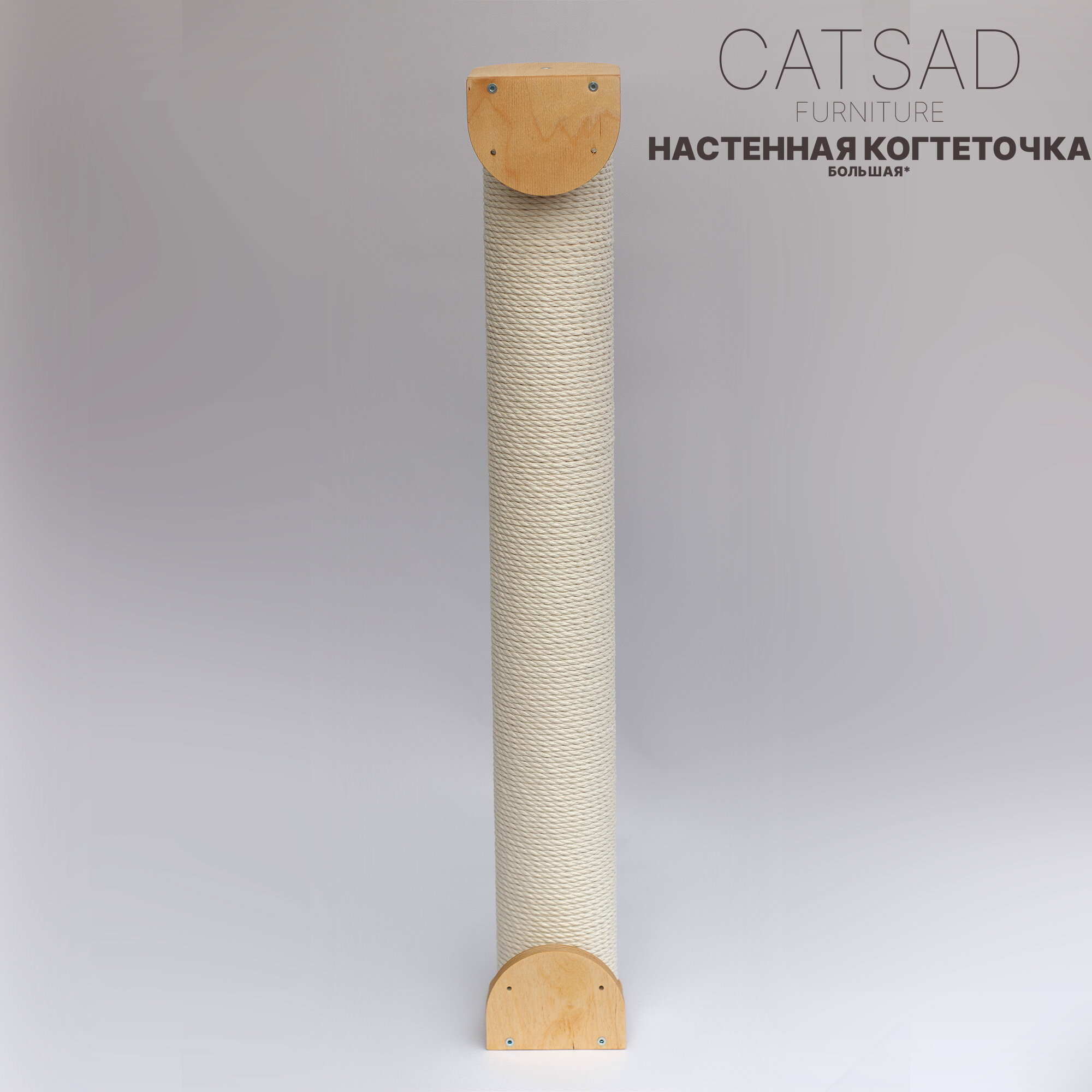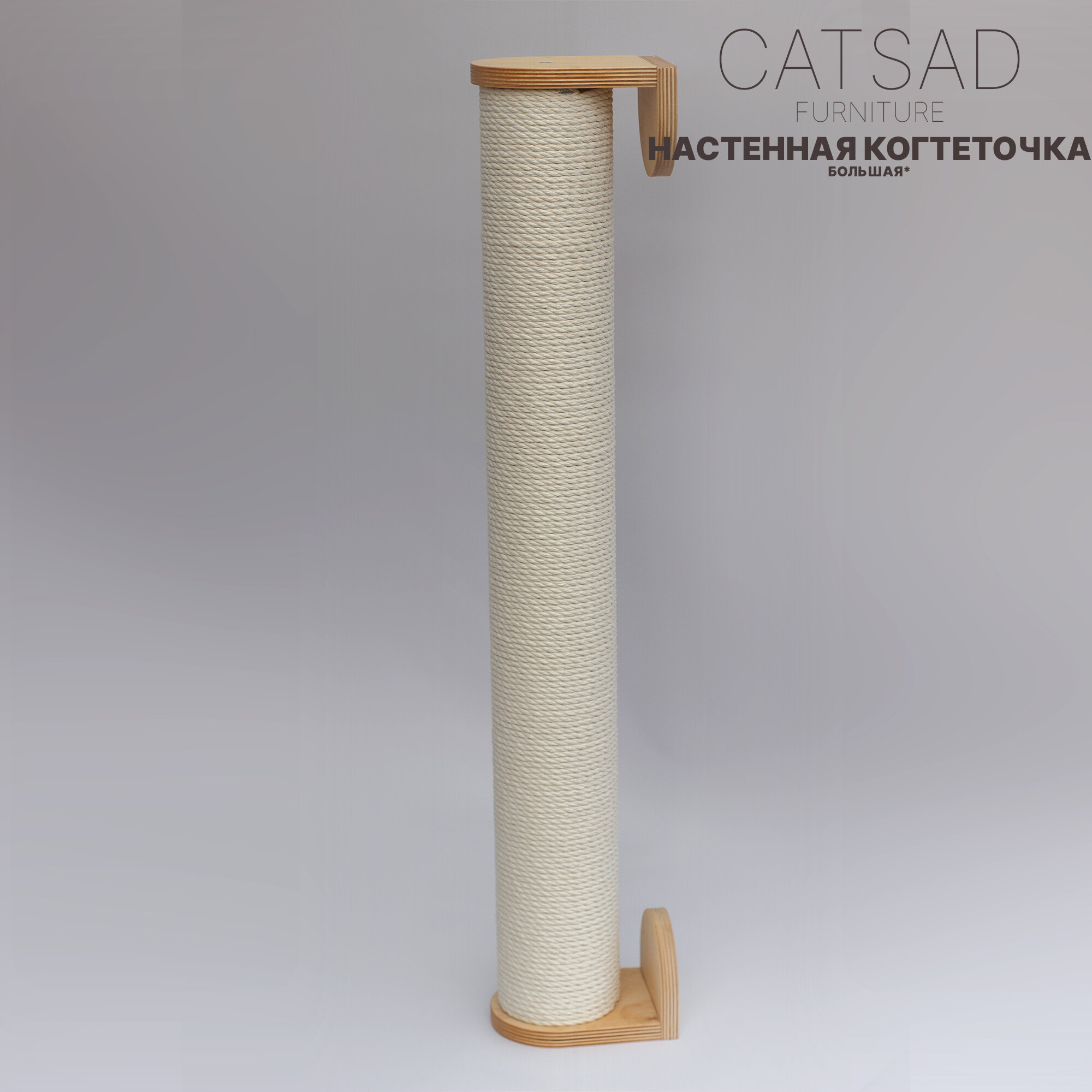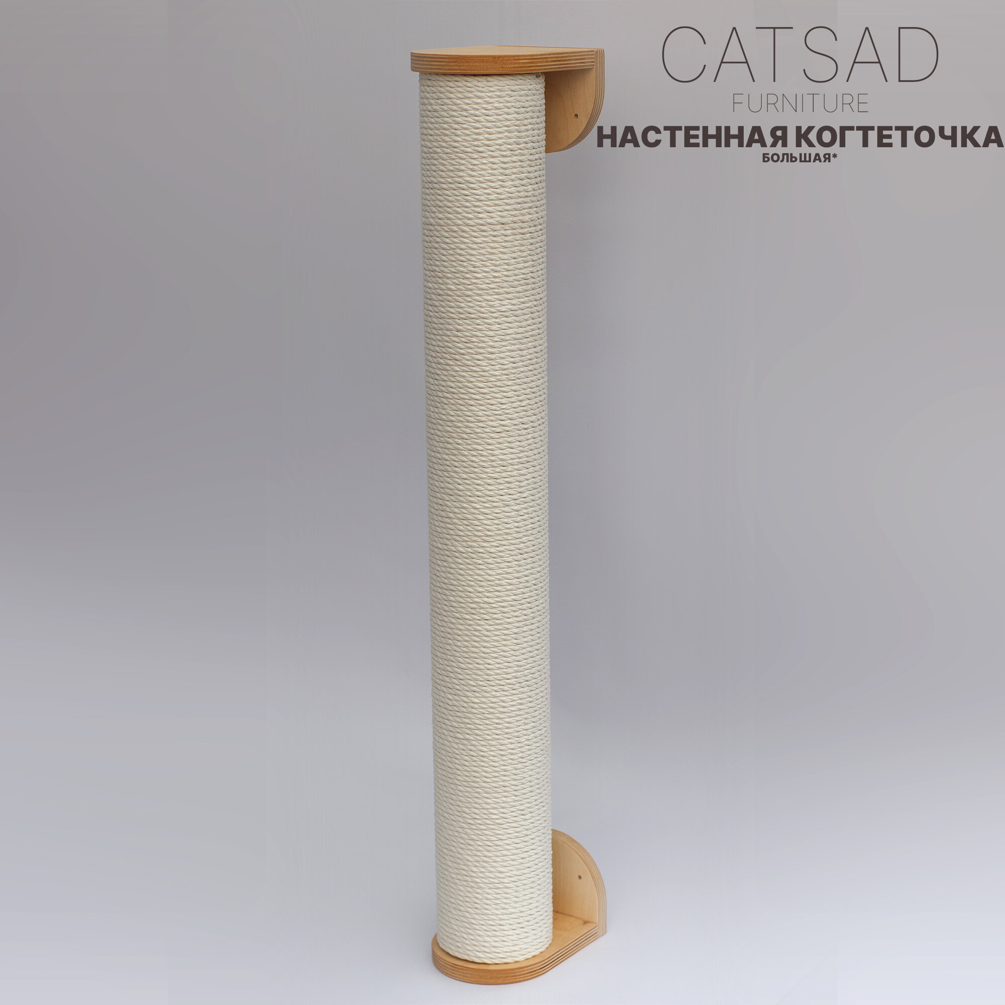 Большая настенная когтеточка-столбик двойная CATSAD, натуральный цвет, хлопок