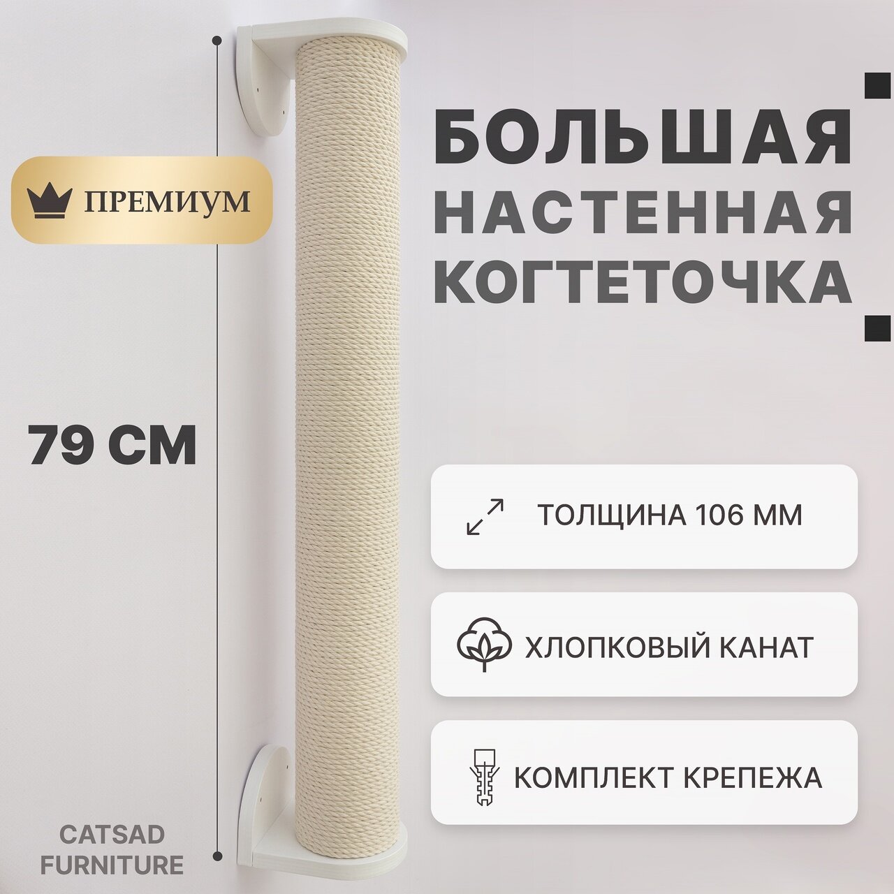 Большая настенная когтеточка-столбик двойная CATSAD, белый цвет, хлопок