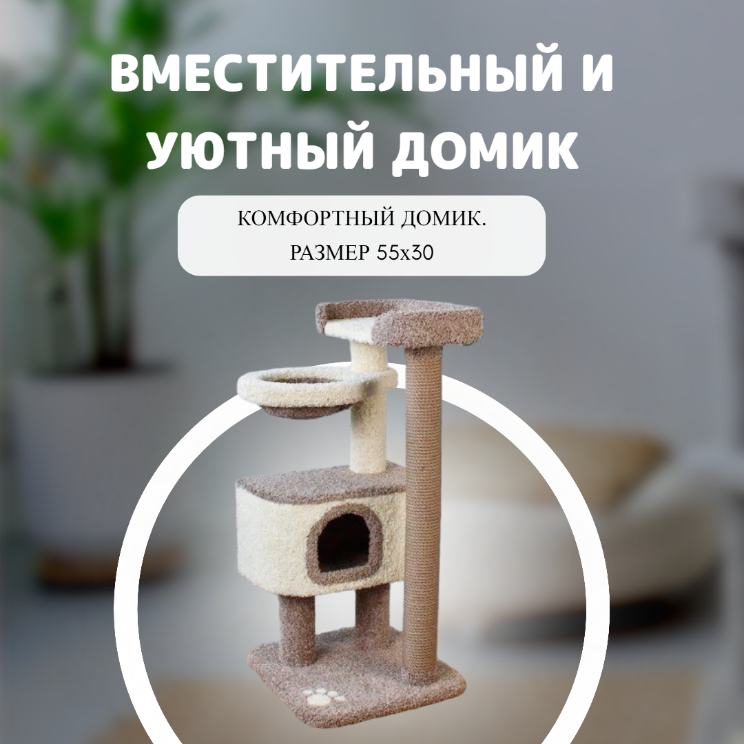 Когтеточка для кошки "Полет" домик и лежанка для животных, мокко цвет интересное: