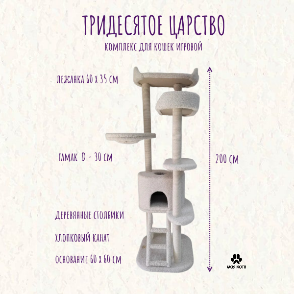 Игровой комплекс-когтеточка для кошек Моя Котя "Тридесятое царство", цвет белый с хлопковым канатом интересное: