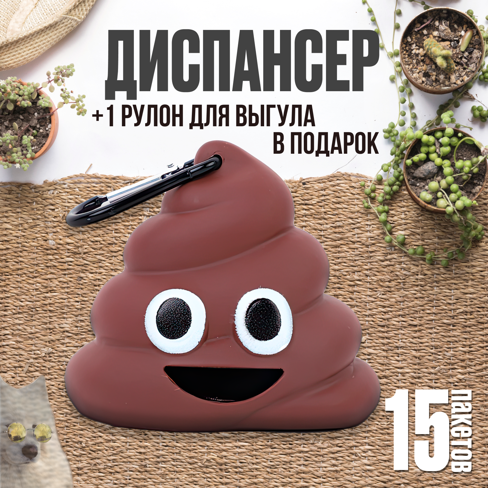 Контейнер, диспансер с гигиеническими пакетами для выгула собак и кошек "Какашка с глазками" интересное: