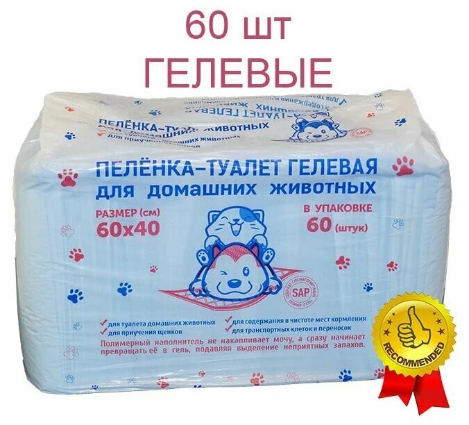 Пеленка-туалет впитывающая одноразовая с суперабсорбентом 60х40 см, 60 штук в упаковке интересное: