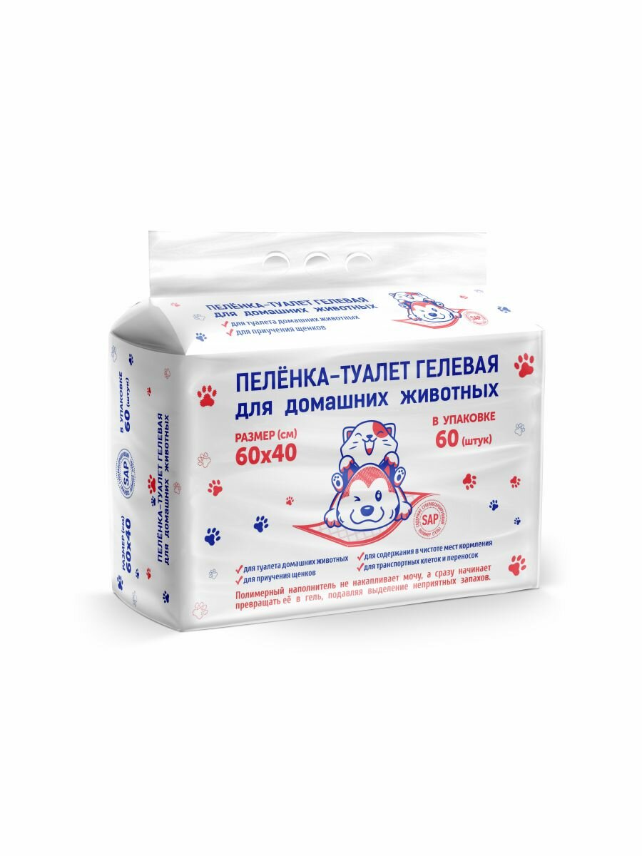 Купить Пеленка-туалет впитывающая одноразовая с суперабсорбентом 60х40 см, 60 штук в упаковке