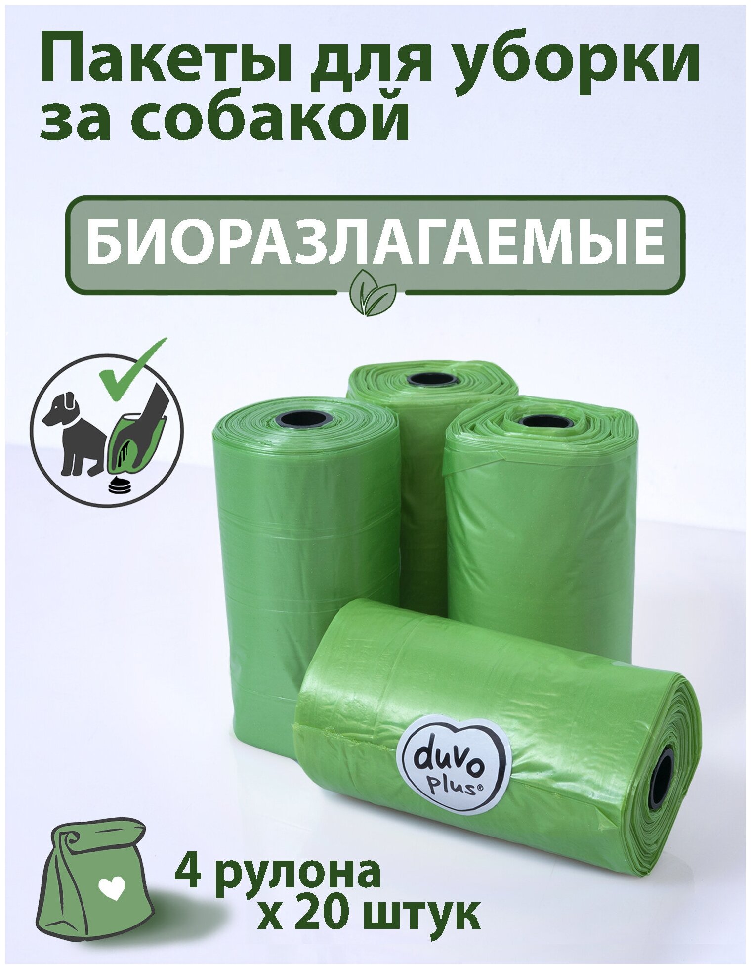 Пакеты биоразлагаемые для уборки за собакой DUVO+ "Био", зелёные, 33х20см, 4x20шт (Бельгия) интересное: