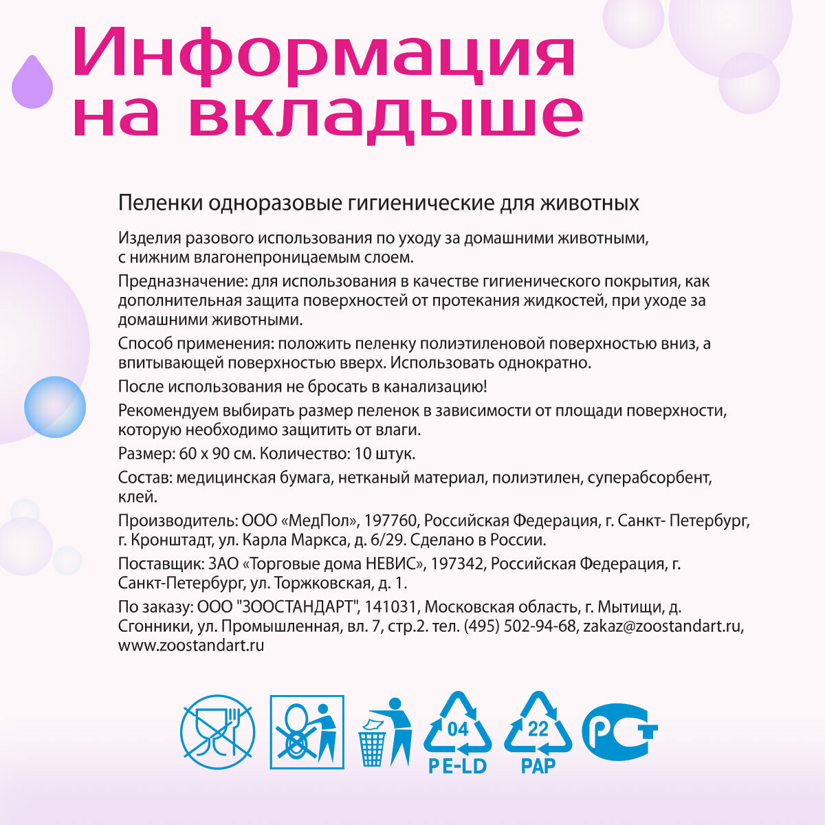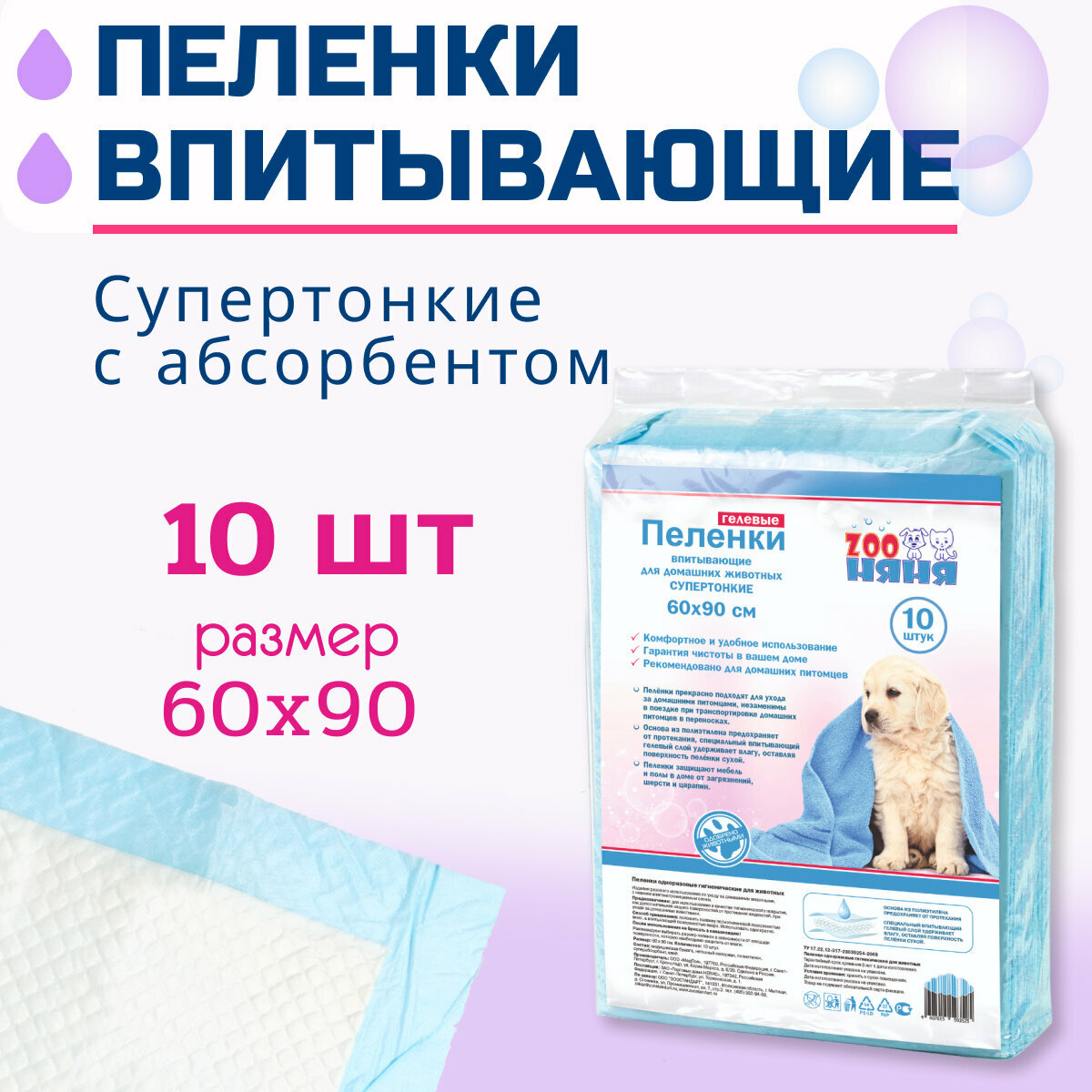 Пеленки впитывающие для животных ZOO няня супертонкие гелевые одноразовые 60х90 10шт интересное: