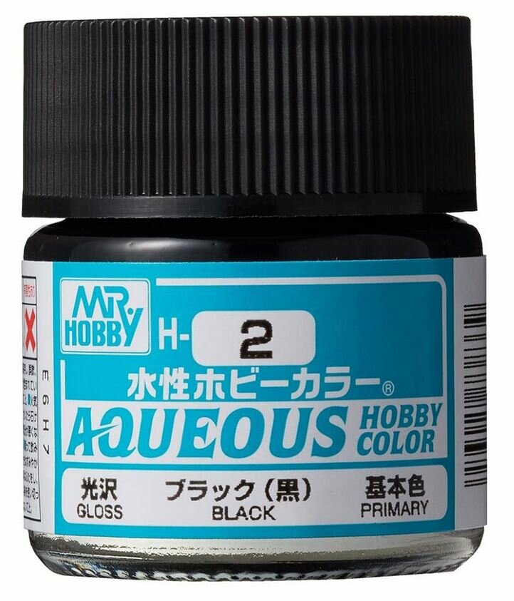 H2 Mr.Hobby Краска акриловая на водной основе, Чёрный глянцевый, 10 мл.