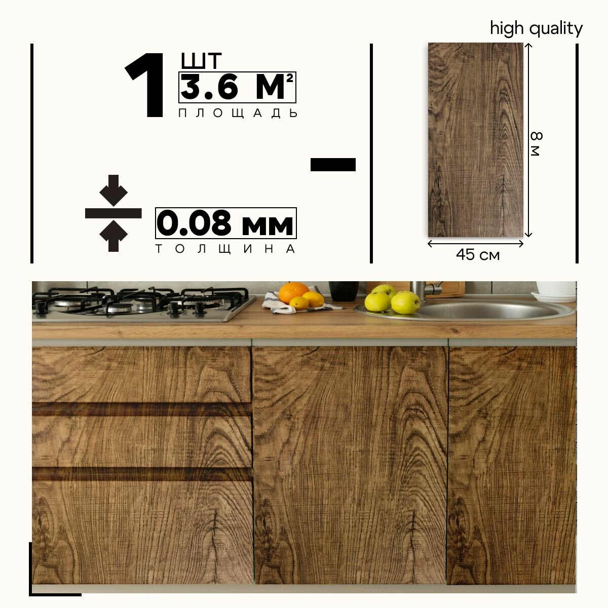 Пленка самоклеящаяся, Дерево темное, 0.45х8 м