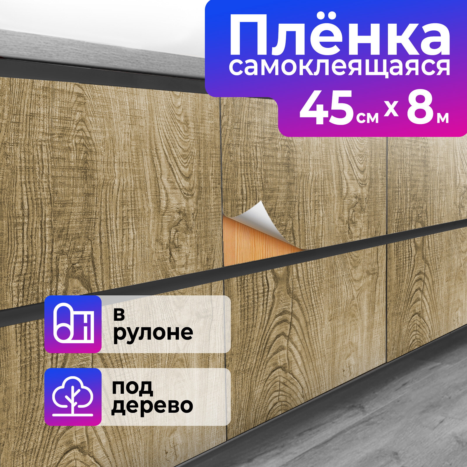 Пленка самоклеящаяся, Доска Фактурная, 0.45х8 м