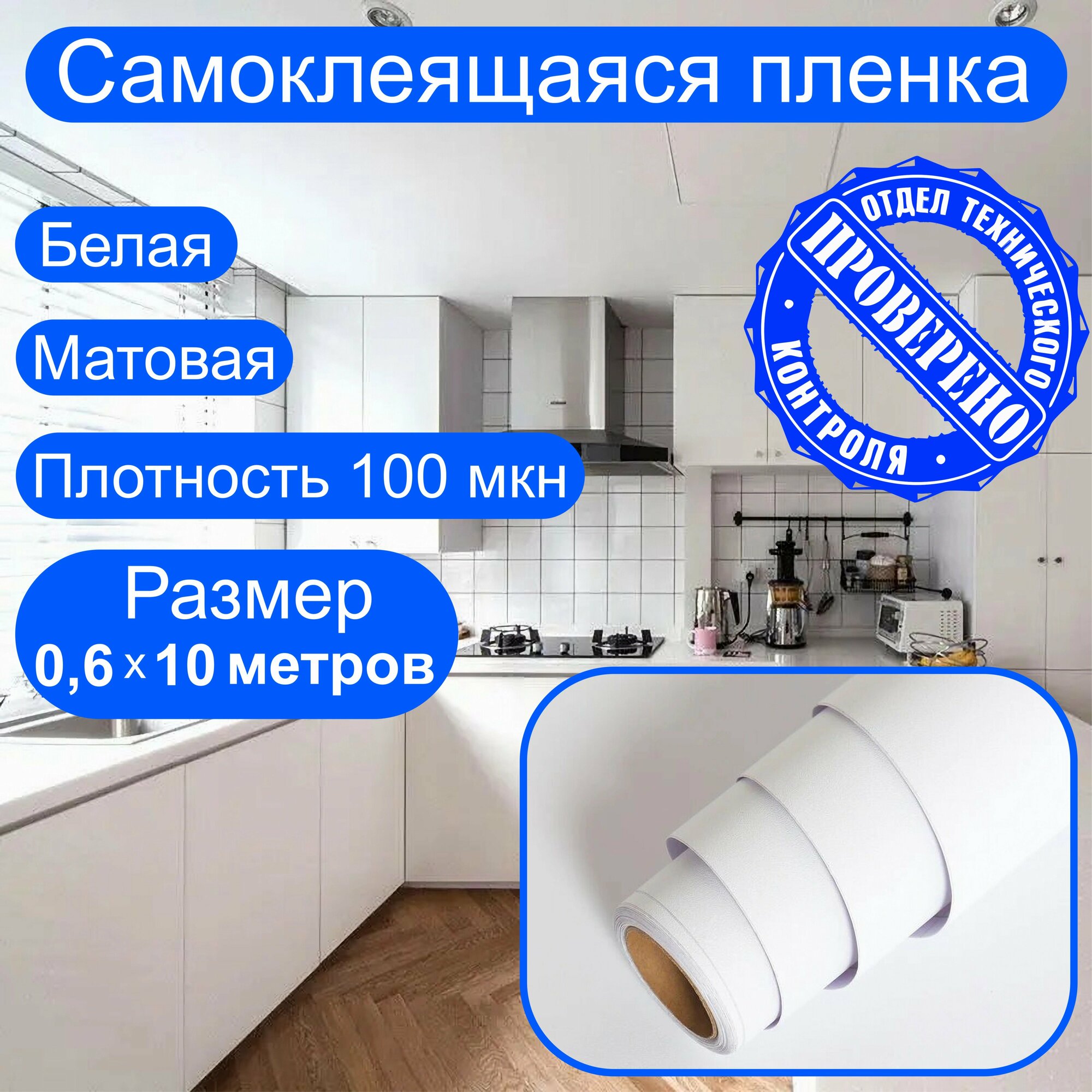 Самоклеящаяся виниловая пленка для мебели и интерьера. Белая, матовая 0,6х1 метр