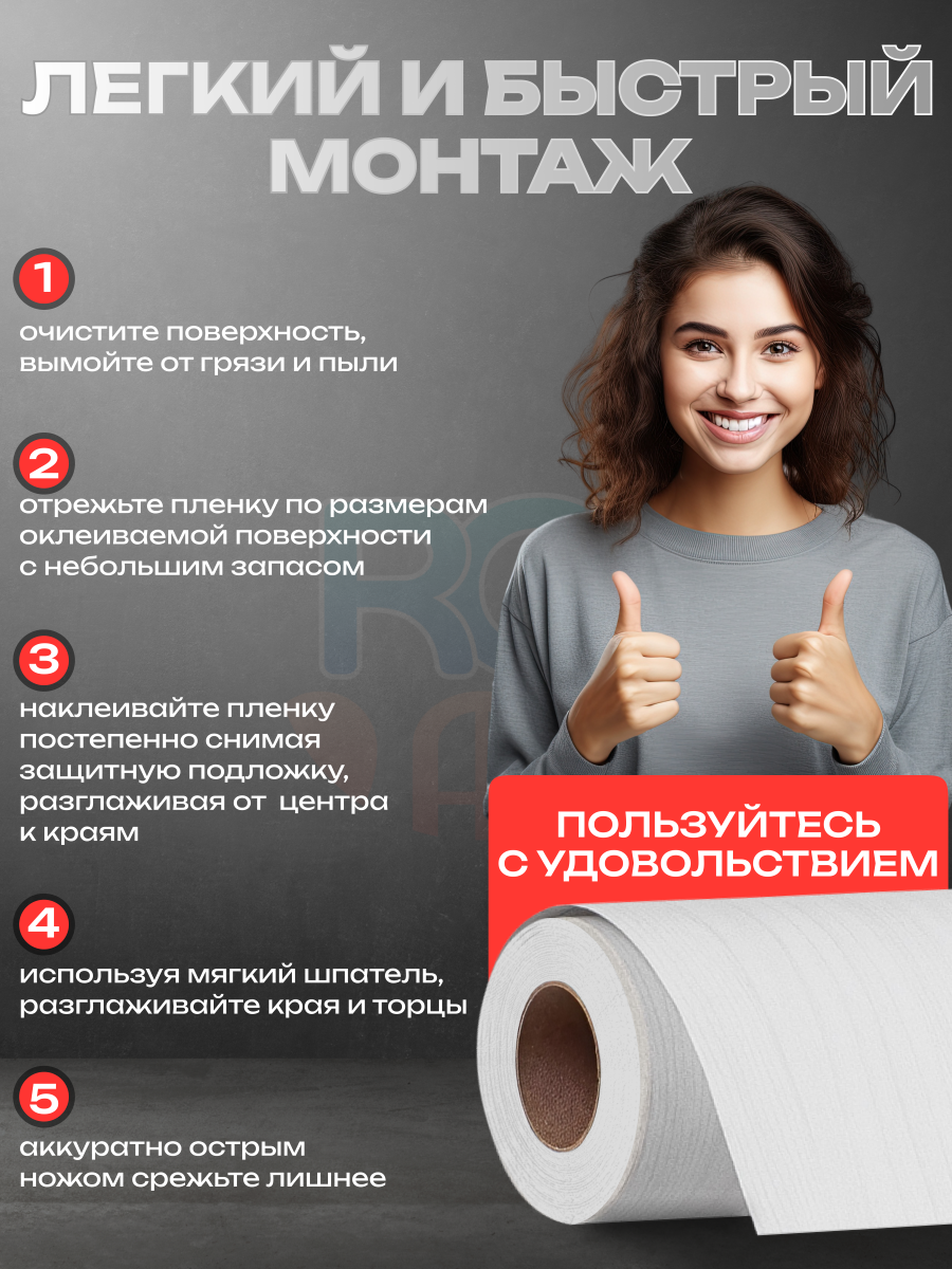 СохранитьСамоклеящаяся пленка для мебели. Пленка для фасадов шкафа белое дерево рулон 45 см*8 м , цвет:белый интересное: