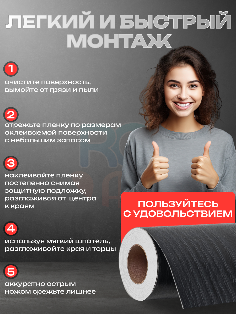 СохранитьПленка самоклеящаяся для кухни. Виниловая пленка для полок с текстурой черное дерево, рулон 45 см*8 м интересное:
