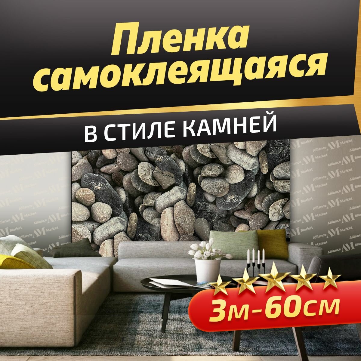 Самоклеящаяся пленка для домашнего декора, ширина 60 см, рулон 3 м/камни интересное: