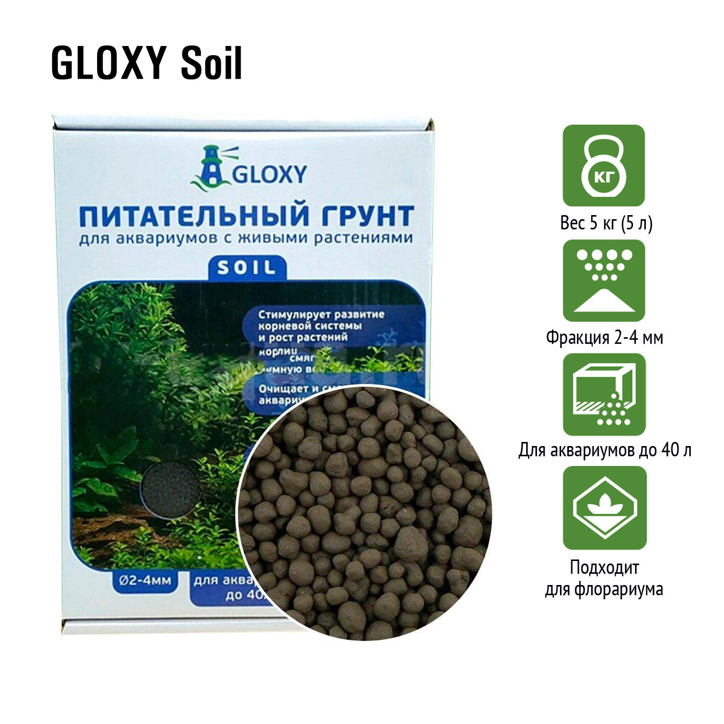 Грунт питательный для аквариума Gloxy Soil, гранулы 2-4 мм, 5кг (5л) (коричневый)