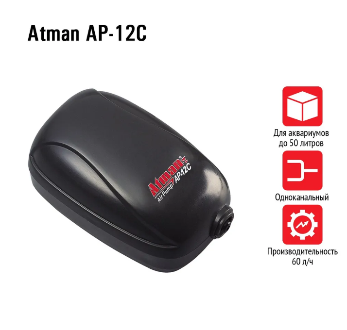 Компрессор Atman AP-12C для аквариумов до 50 литров, 60 л/ч, нерегулируемый интересное: