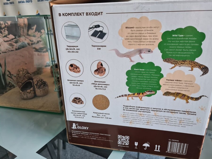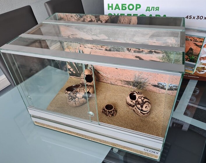 Террариум с оборудованием и декорациями Gloxy Набор для эублефара 45х30х32см интересное: