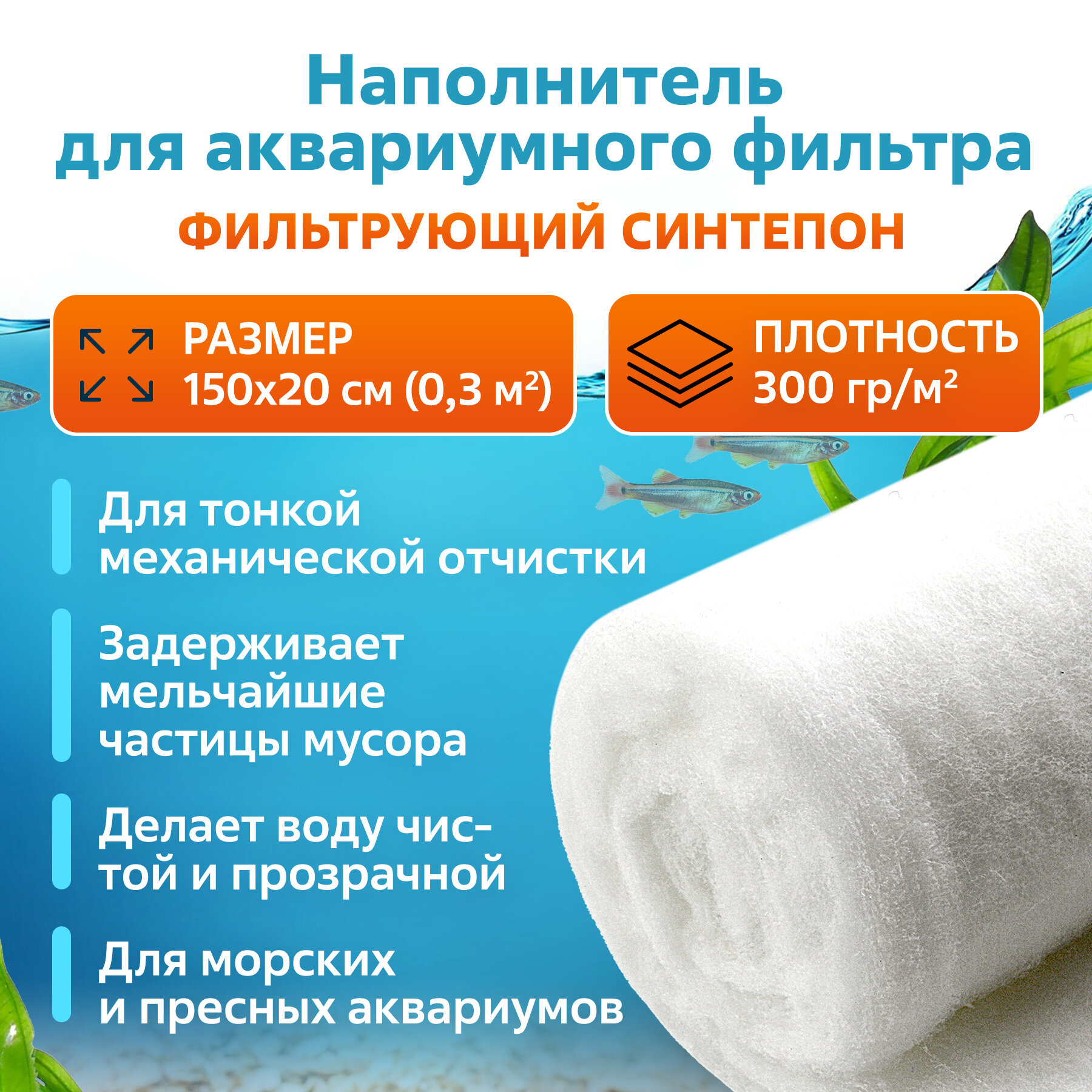 Синтепон листовой фильтрующий, наполнитель аквариумного фильтра для очистки воды 150х20х2.5 см, плотность 300 г/м2 интересное: