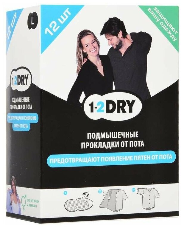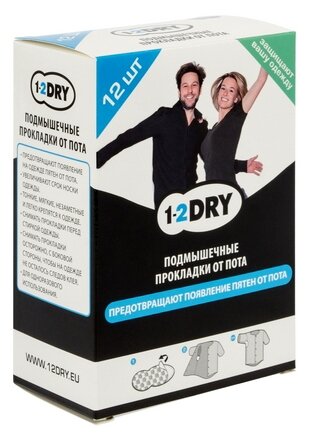 1-2DRY Подмышечные прокладки от пота L (большие), Нидерланды, Эльфарма, упаковка 12 прокладок чёрного цвета. интересное: