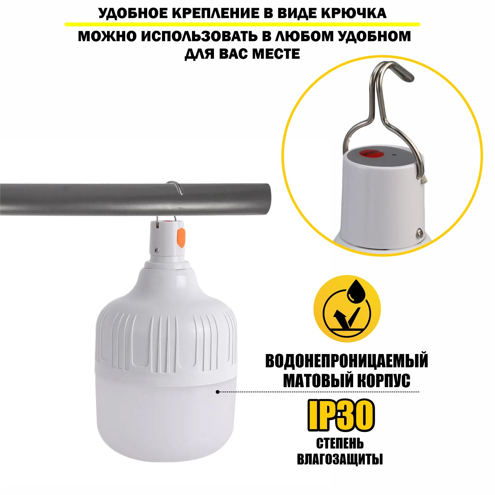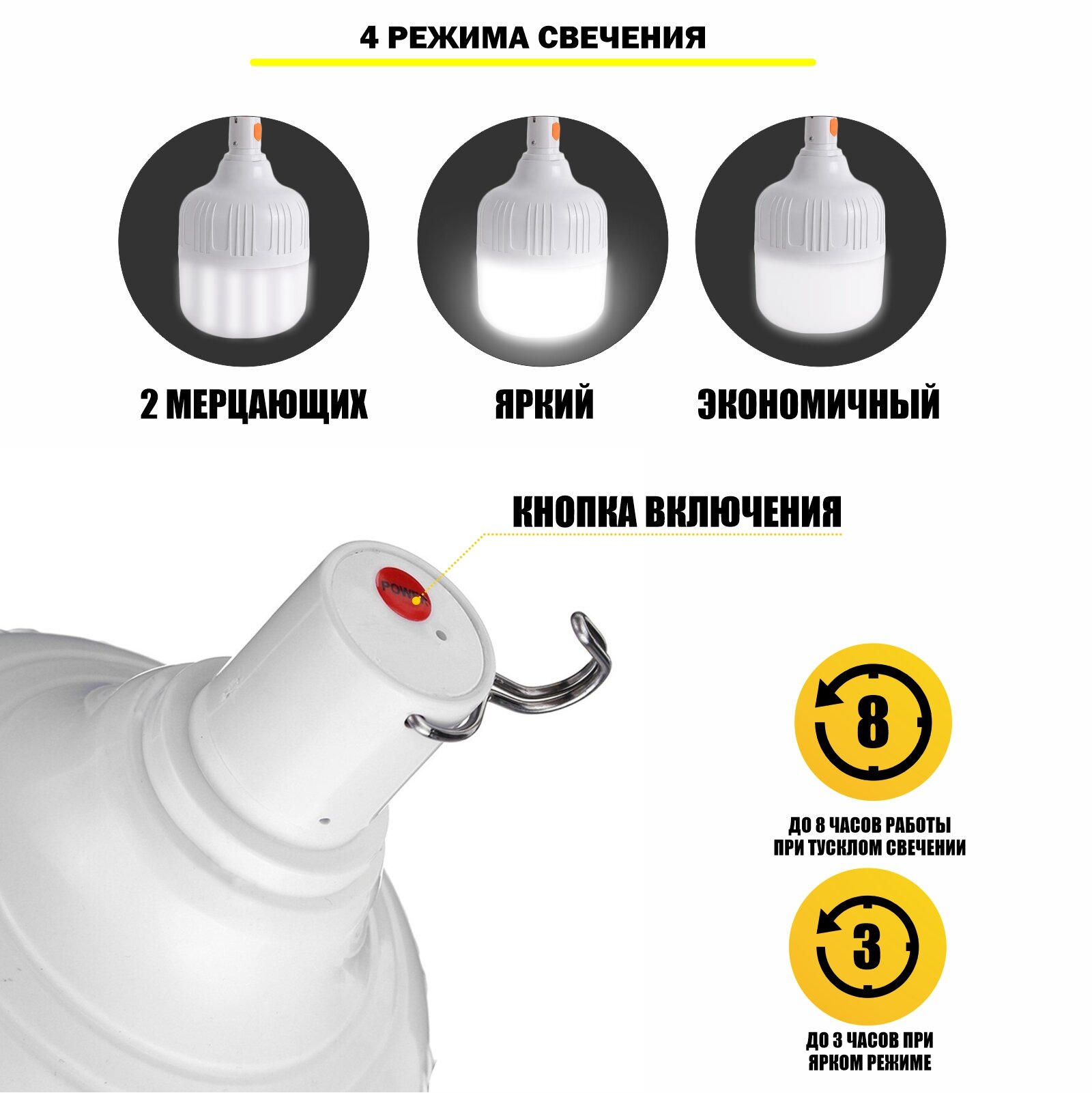 | Дополнительная информация | Полностью заряженная лампа для гаража будет обеспечивать устойчивый свет до 3 часов при ярком режиме, до 8 часов при тусклом свечении. |