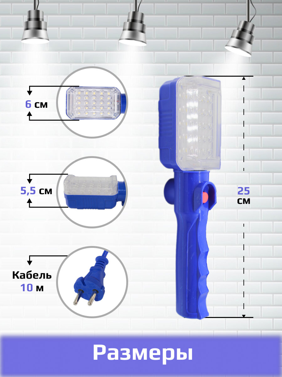 Лампа переносная светодиодная , Переноска-светильник длина кабеля 10 метров, синяя интересное: