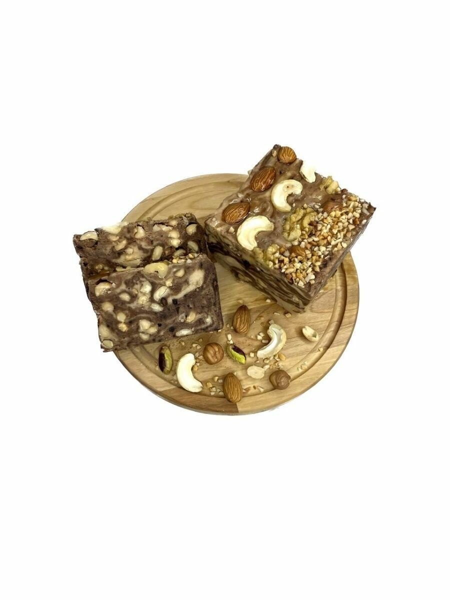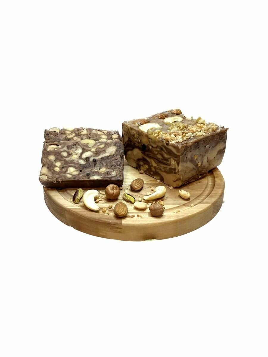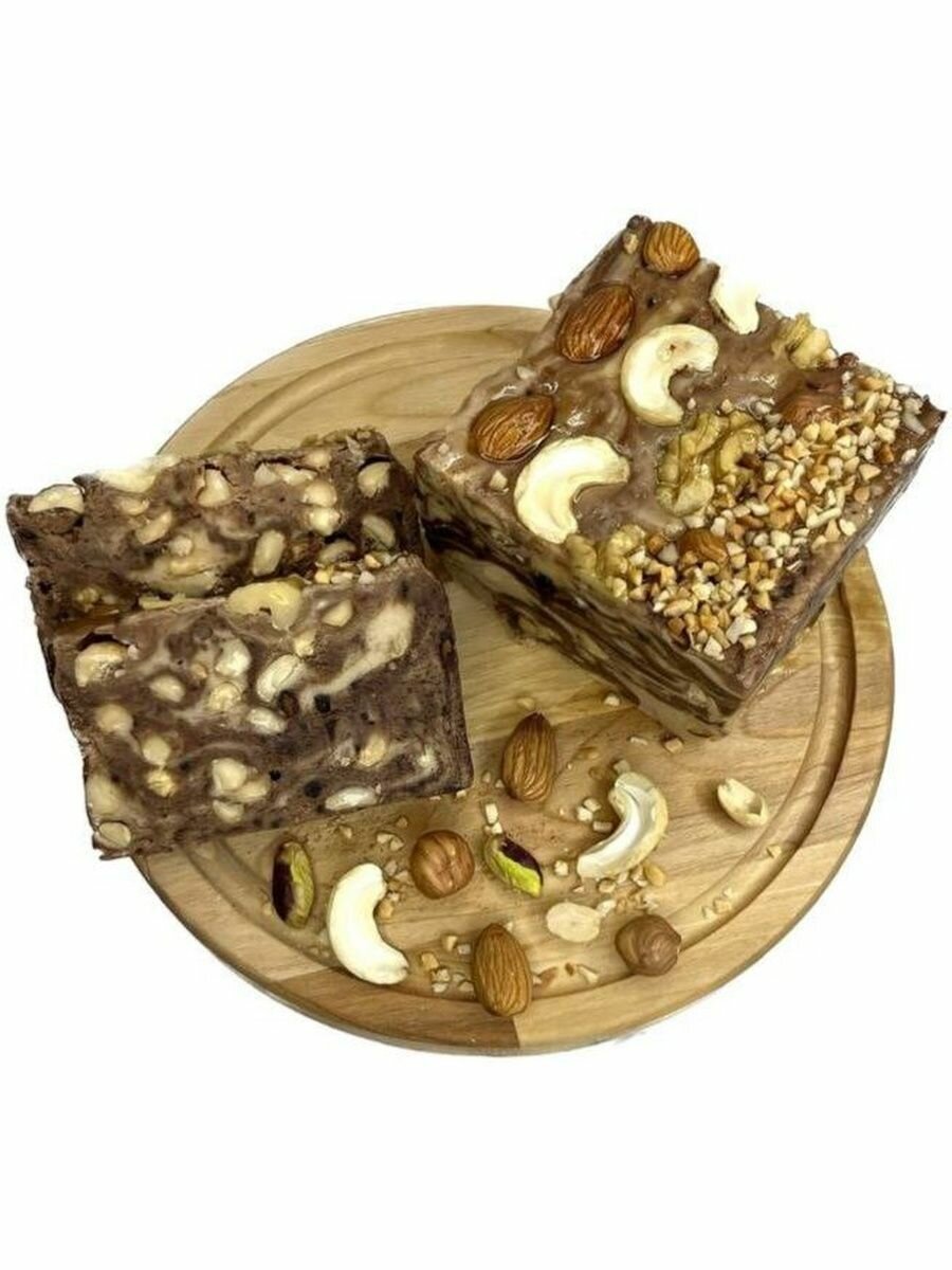 | Состав | Сахар, сливочное масло, сухое молоко, шоколадный порошок, арахис, фундук, миндаль, орех грецкий. |