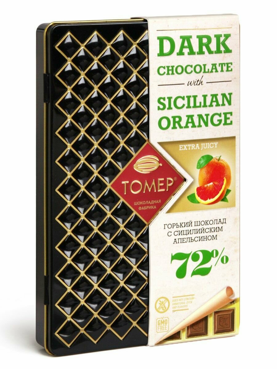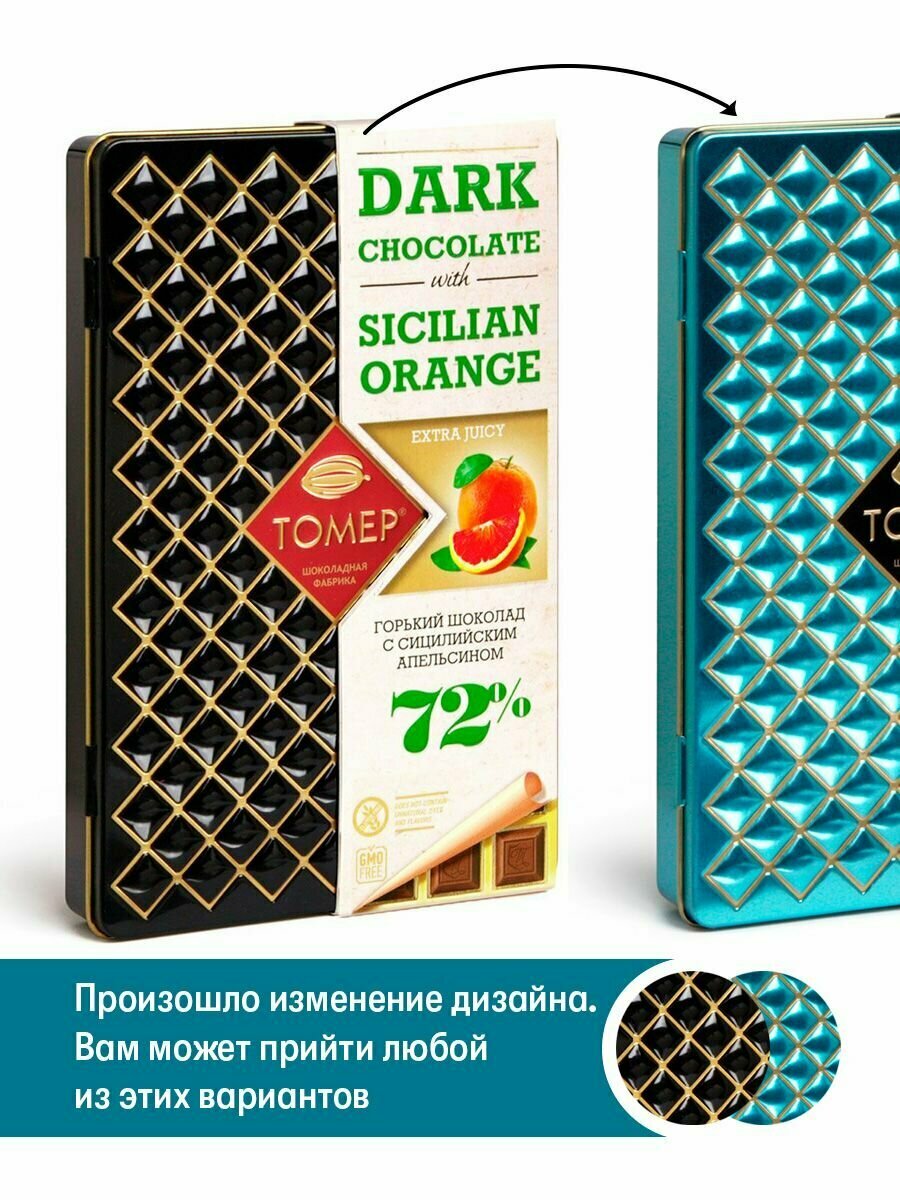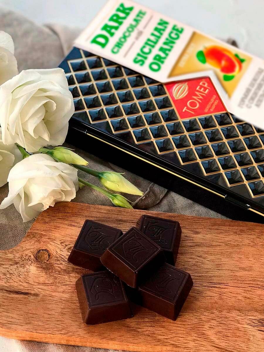Шоколад Томер с сицилийским апельсином, горький 72%, металлический пенал, 90 гр интересное: