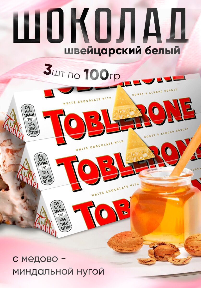 Купить Toblerone шоколад белый с медово-миндальной нугой 100г - 3 шт