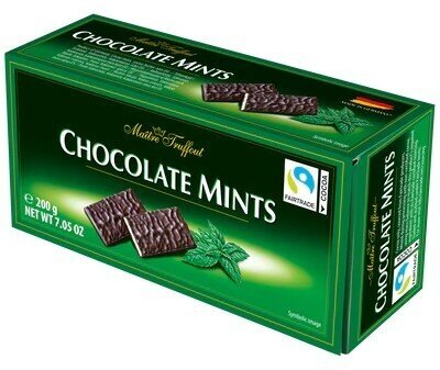 | Состав | Темный шоколад с мятной начинкой: темный шоколад 51% (какао-масса, сахар, какао-масло, эмульгатор:Е322), начинка 49% (сахар, патока, увлажнитель: Е1103, натуральное масло мяты перечной |