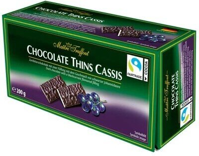 Темный шоколад с карамельной начинкой в пластинках CHOKOLATE THINS CARAMEL, 200гр