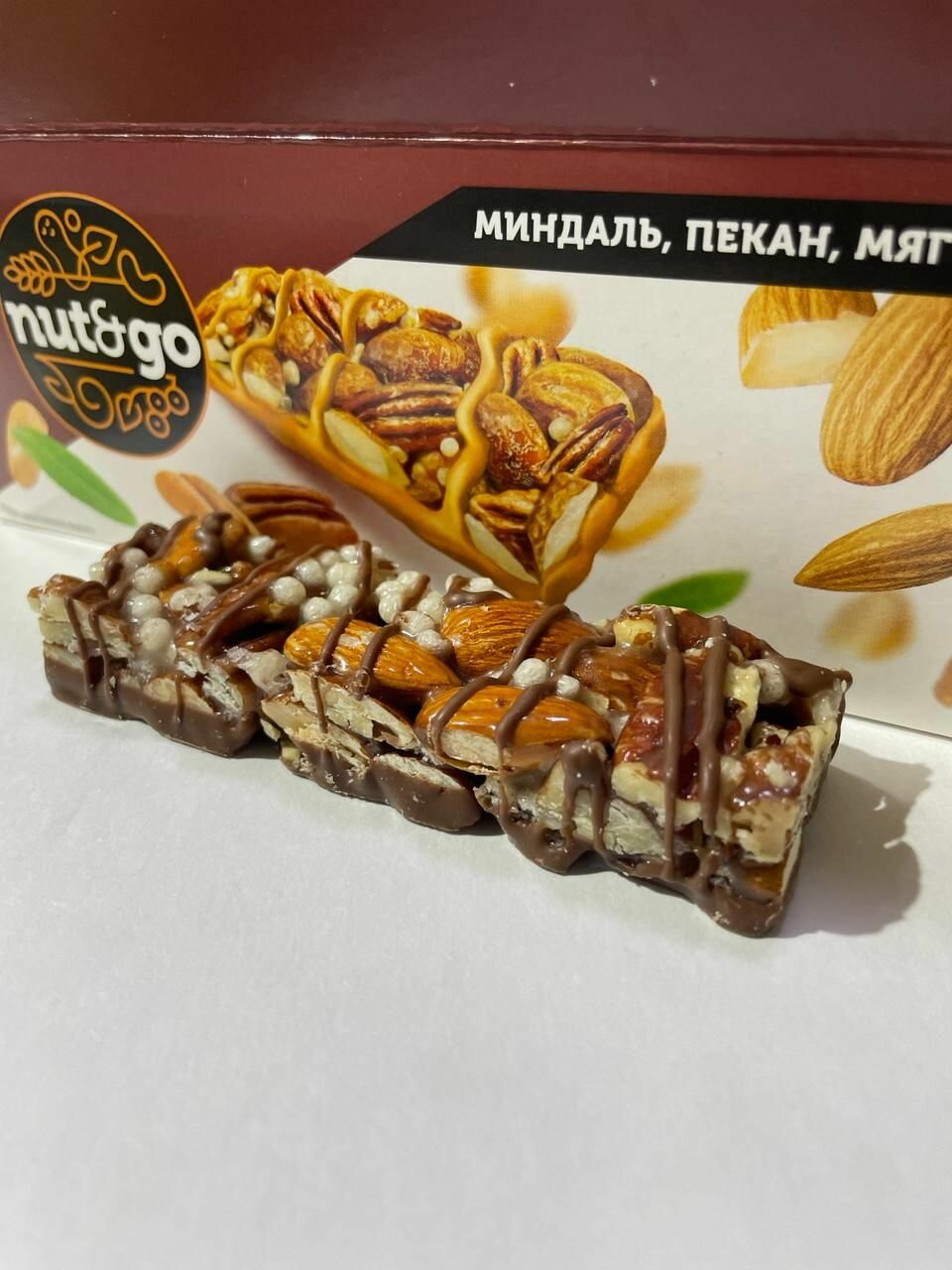 Батончик Nut and Go миндаль арахис KDV, 36шт(2 блока)