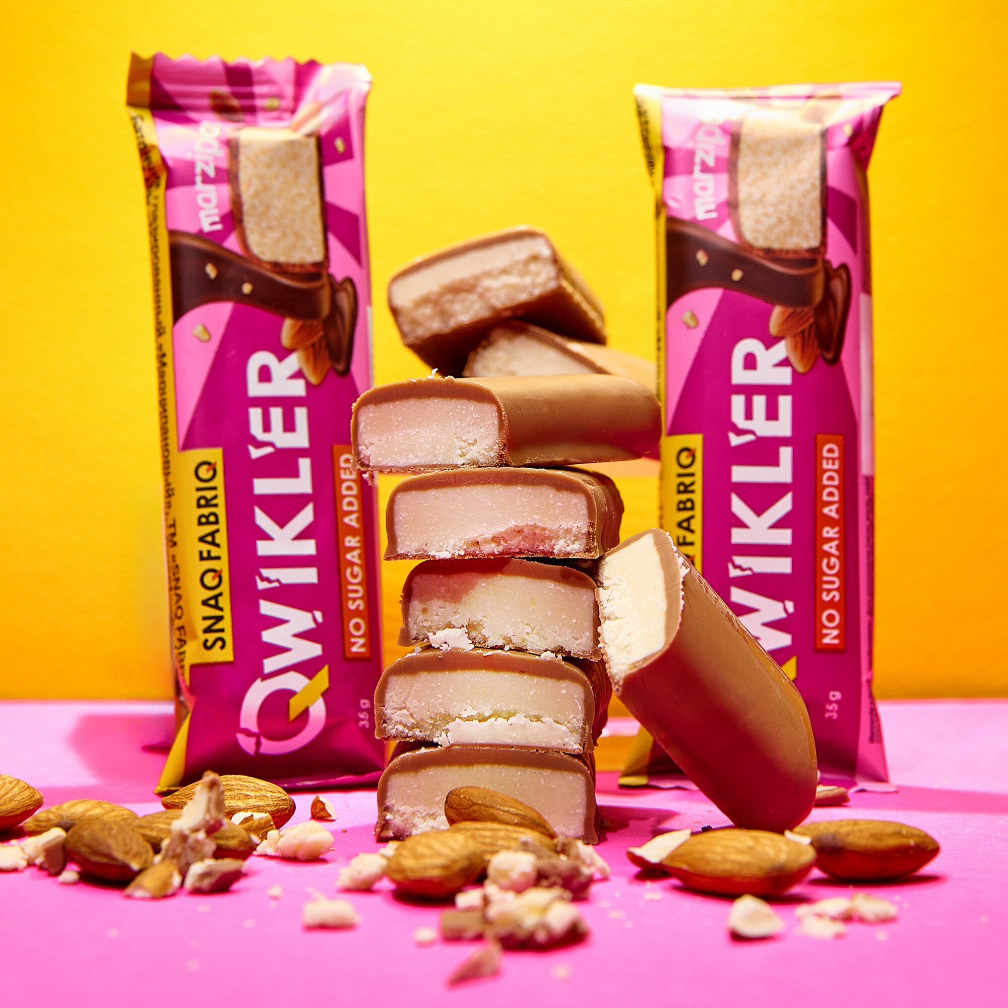 Купить Батончик в шоколаде SNAQ FABRIQ Qwikler без сахара "Марципан", 12шт х 35г