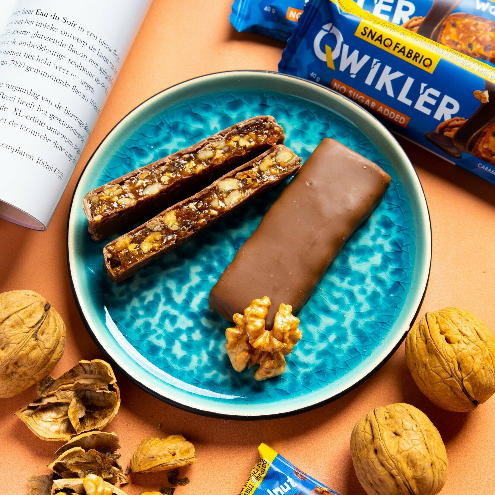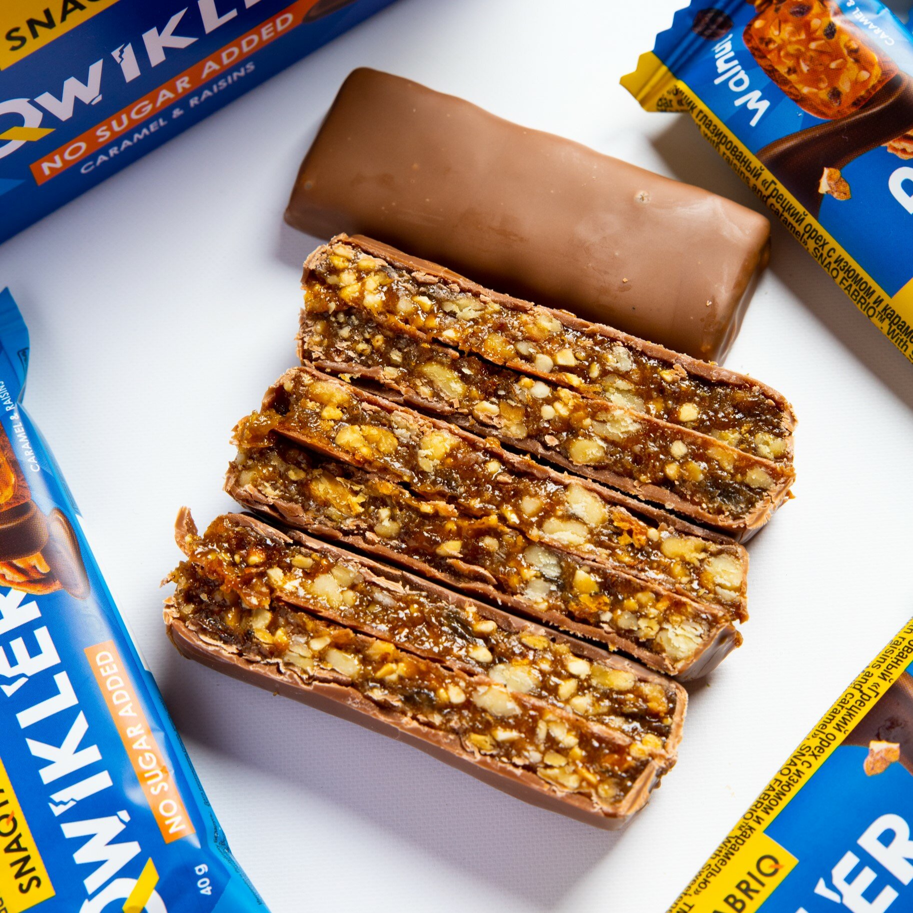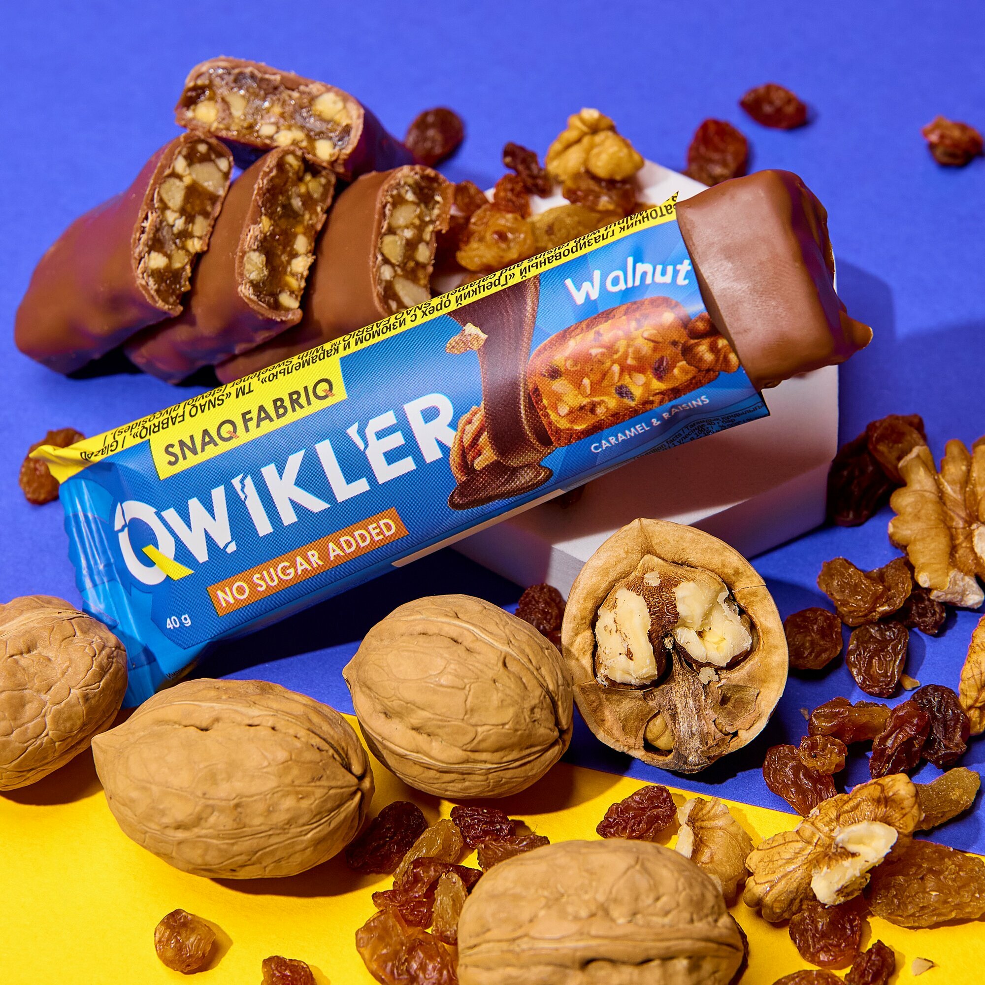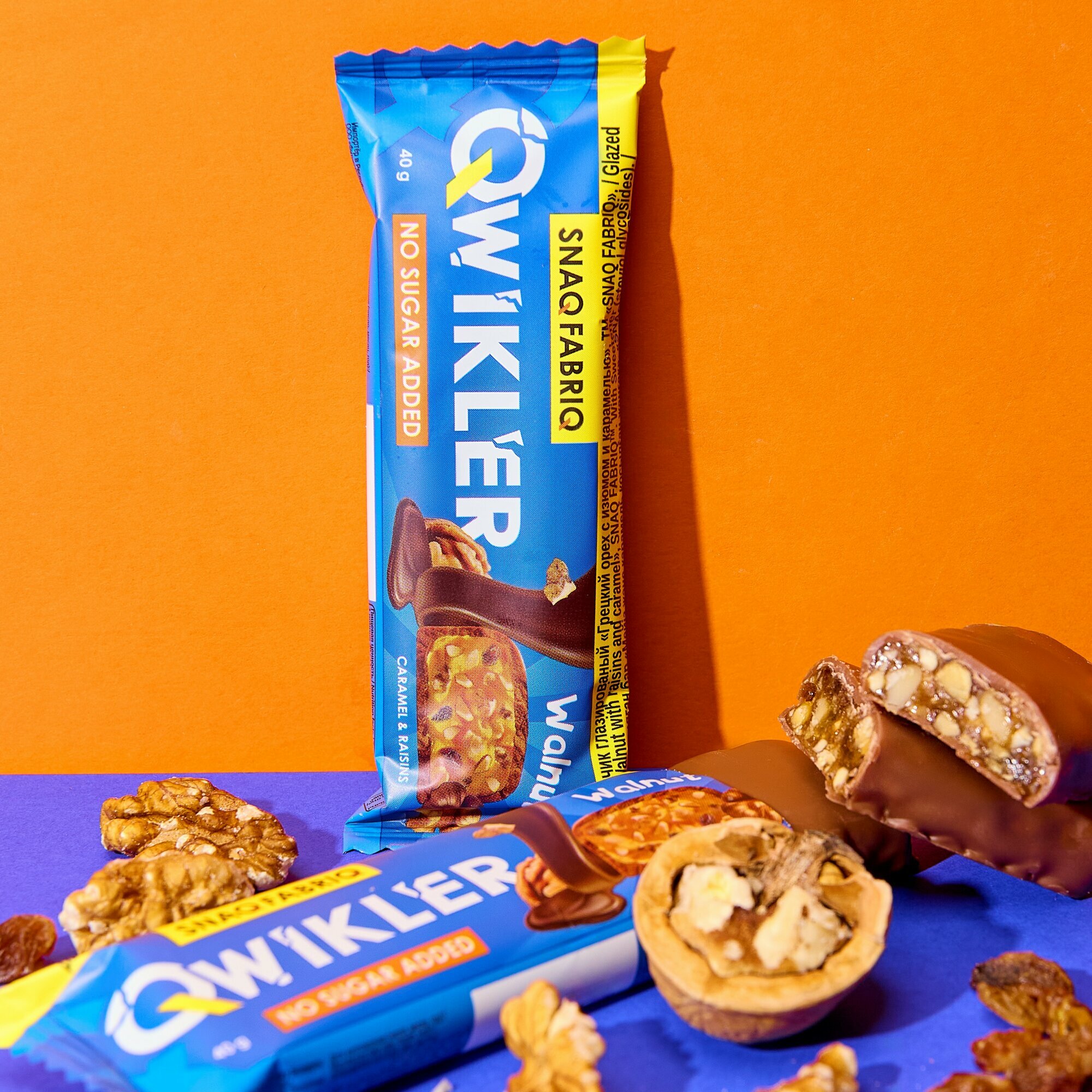 Купить SNAQ FABRIQ Батончики в шоколаде без сахара Qwikler "Грецкий орех с изюмом и карамелью", 40г х 12шт