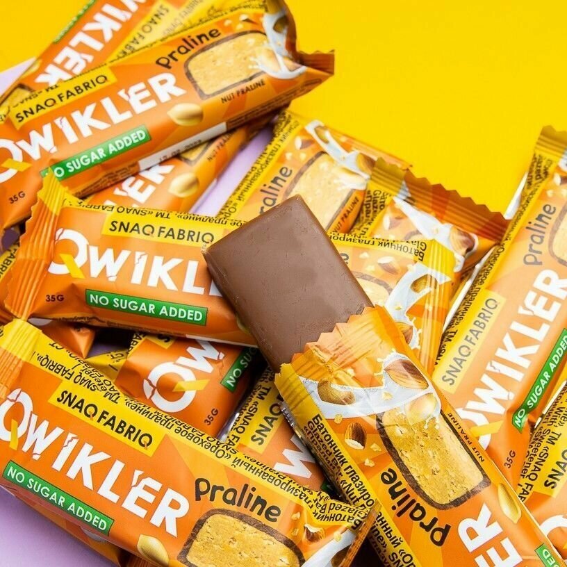 Батончик в шоколаде SNAQ FABRIQ Qwikler без сахара "Ореховое пралине", 12шт х 35г интересное: