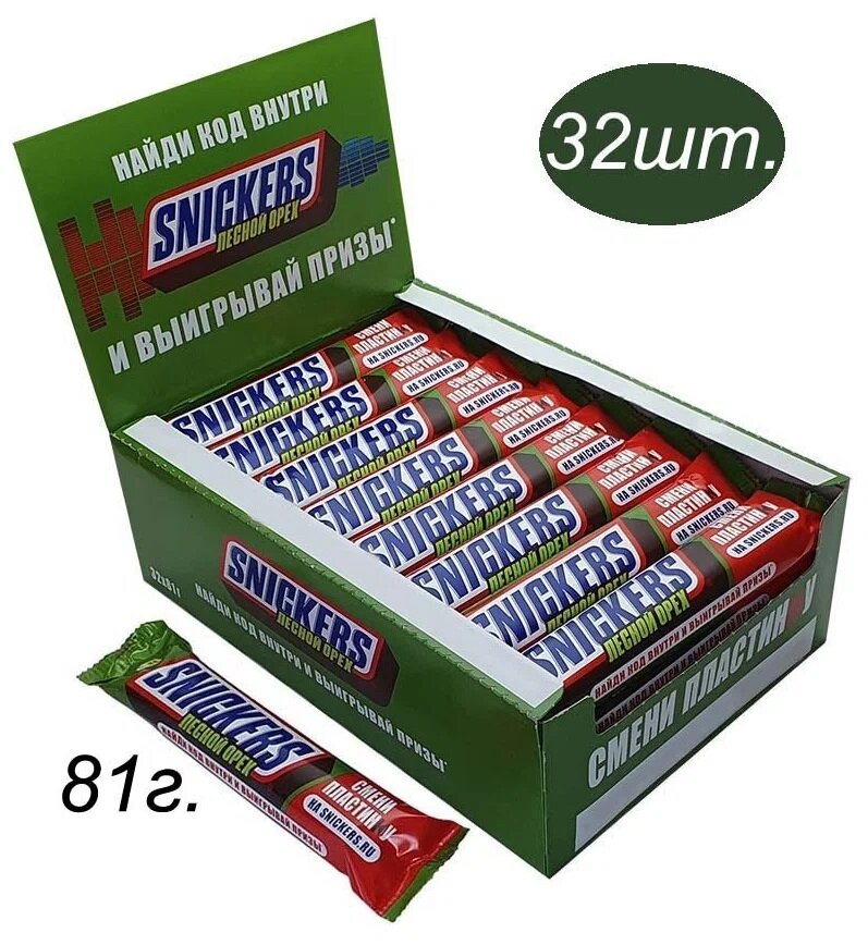 M.Snickers Лесной Орех шоколадный батончик 81г интересное: