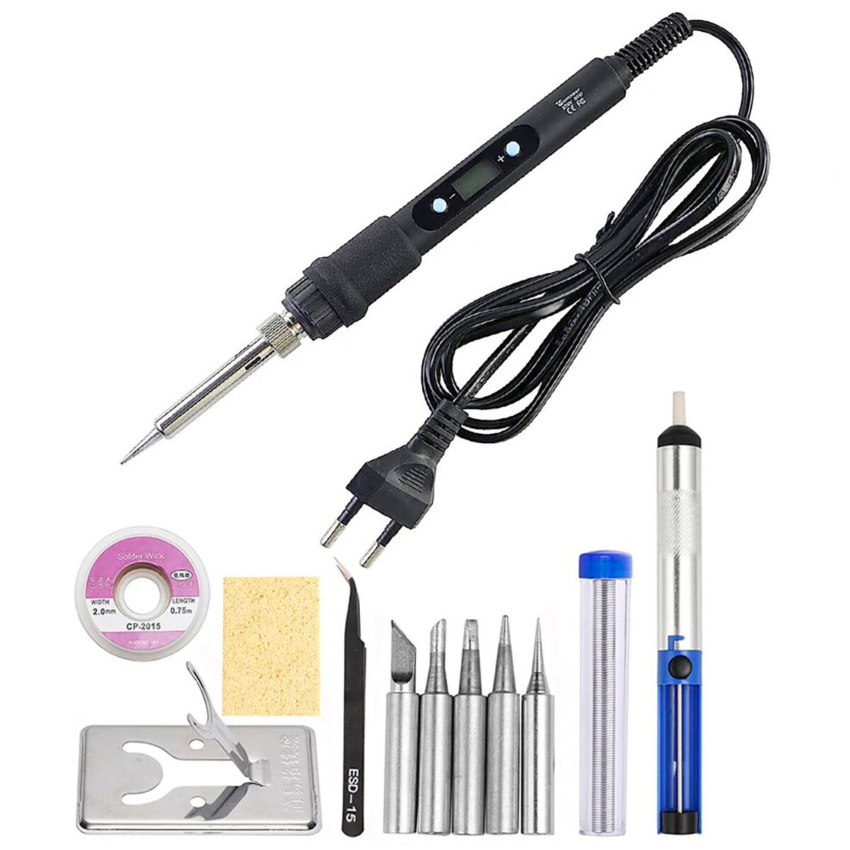 Купить Цифровой электрический паяльник с регулировкой температуры,экраном и набором аксессуаров, 80Вт, черный