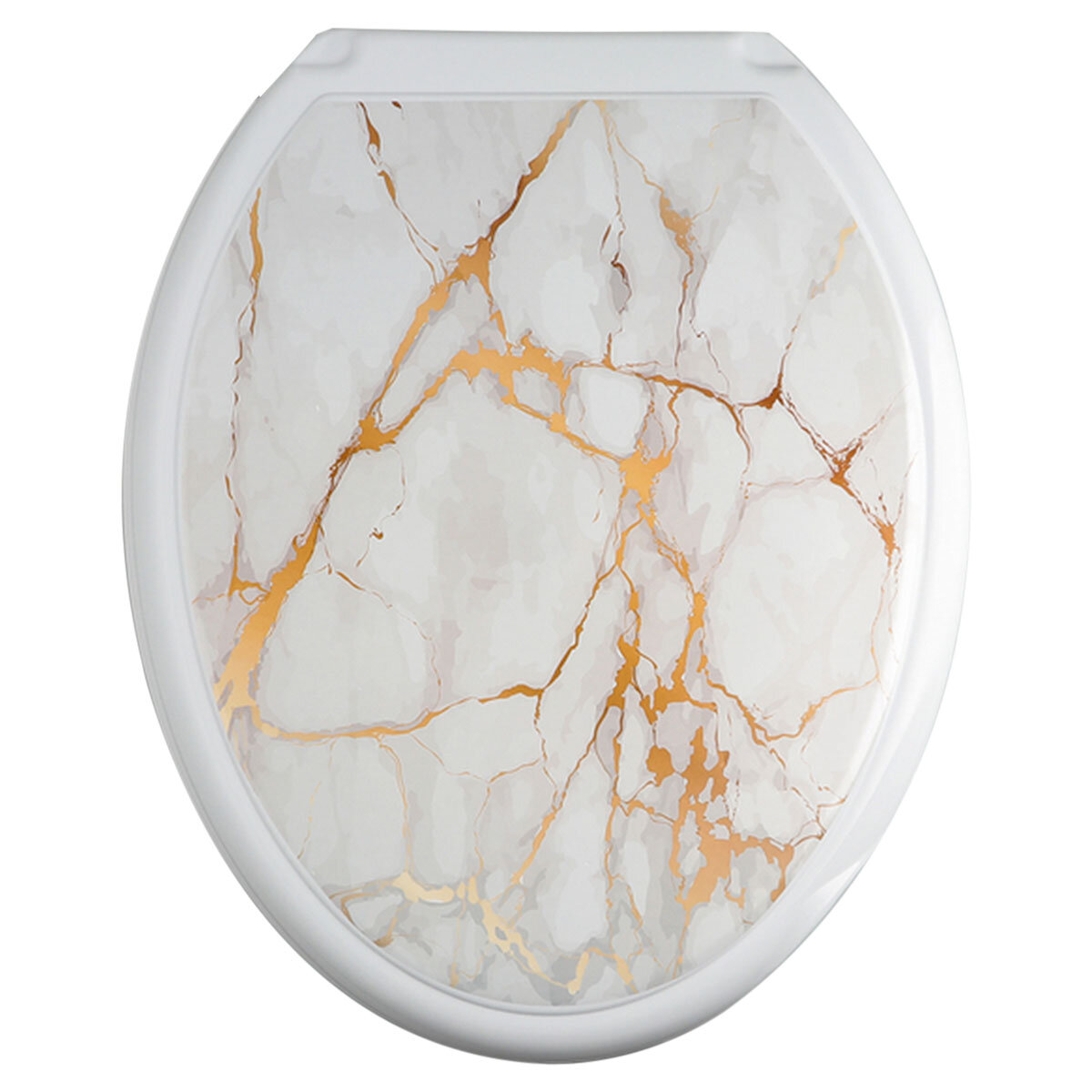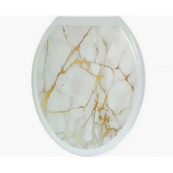 Крышка-сиденье для унитаза русспласт Декор "Белый мрамор" пластик белый/золотистый 445 мм 360 мм