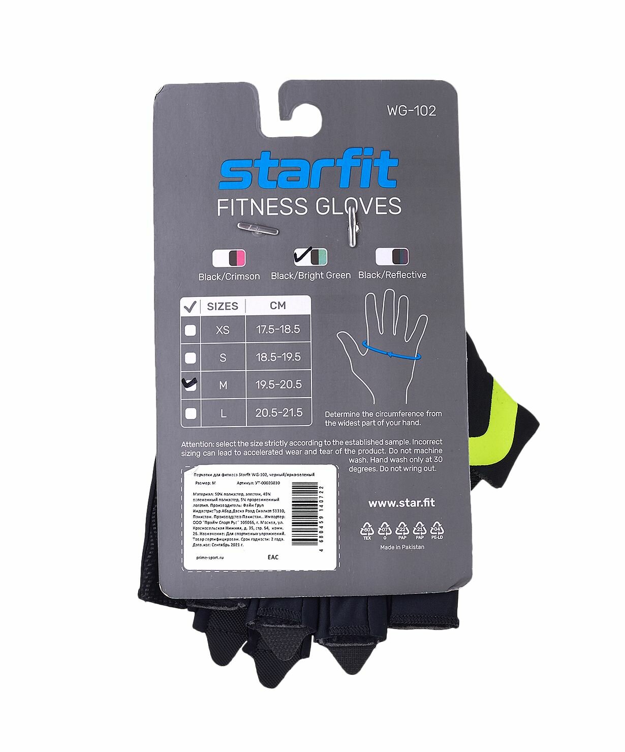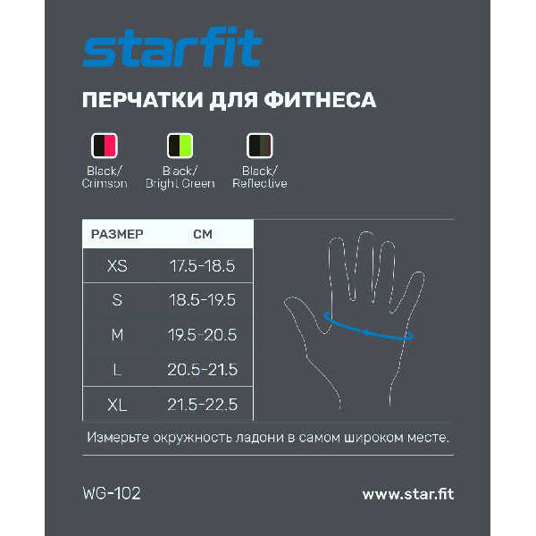 Купить Перчатки для фитнеса STARFIT WG-102, черный/ярко-зеленый (XL)