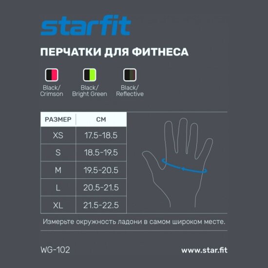 Купить Перчатки для фитнеса STARFIT WG-102, черный/ярко-зеленый (XS)