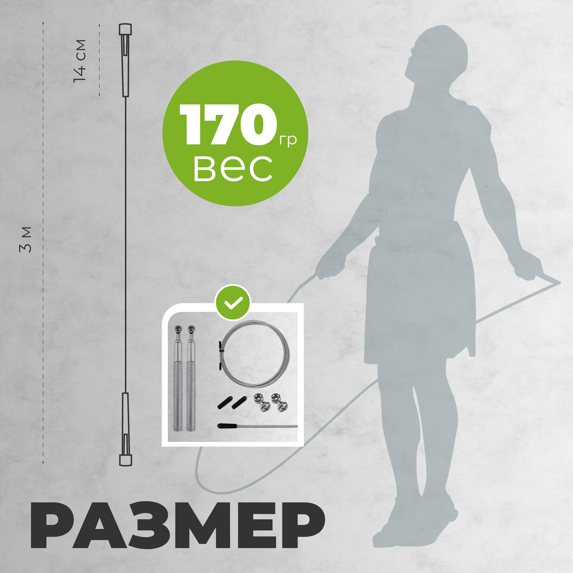 Скоростная скакалка для фитнеса с подшипником, 280 см, черная. Регулируемая длина. Удобные противоскользящие ручки