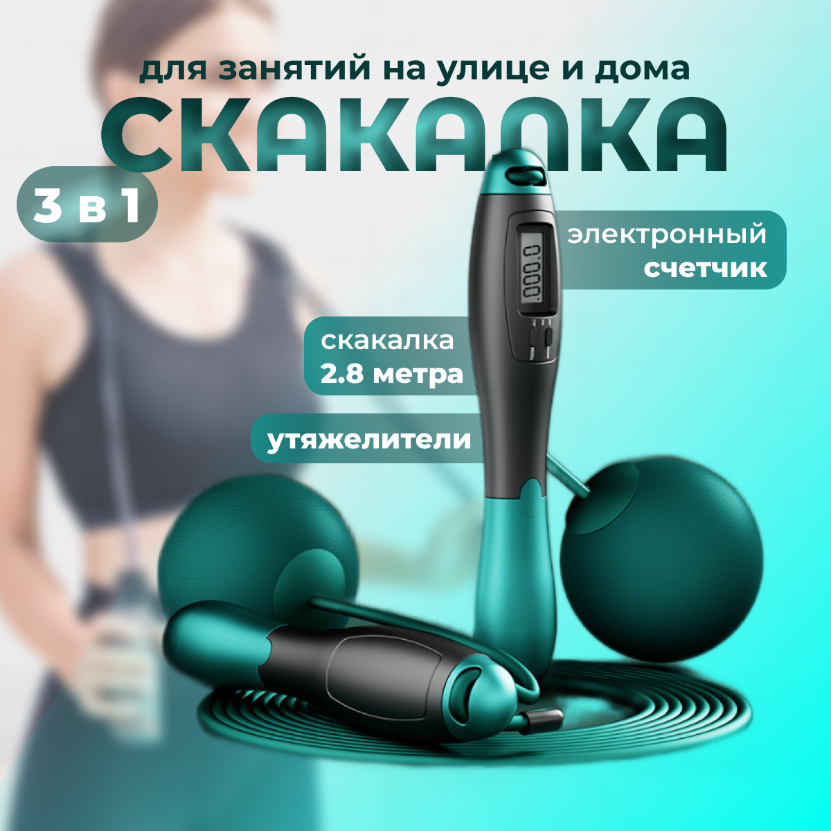 Скакалка с электронным счетчиком и утяжелителями, зеленая интересное: