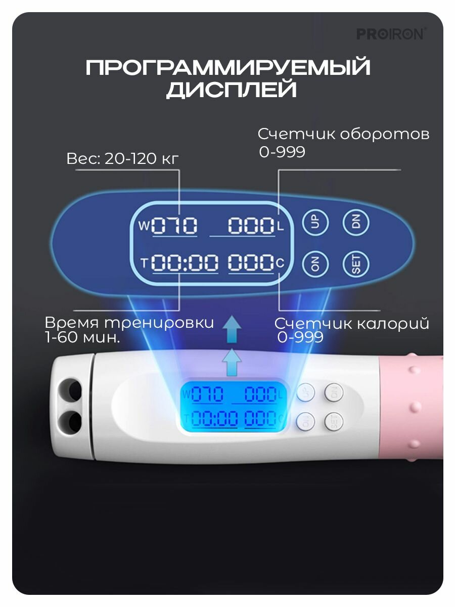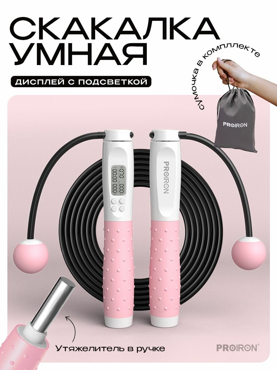 Скакалка для фитнеса взрослая, умная, со счетчиком, PROIRON ПРО041, с утяжелителями, бело-розовая интересное: