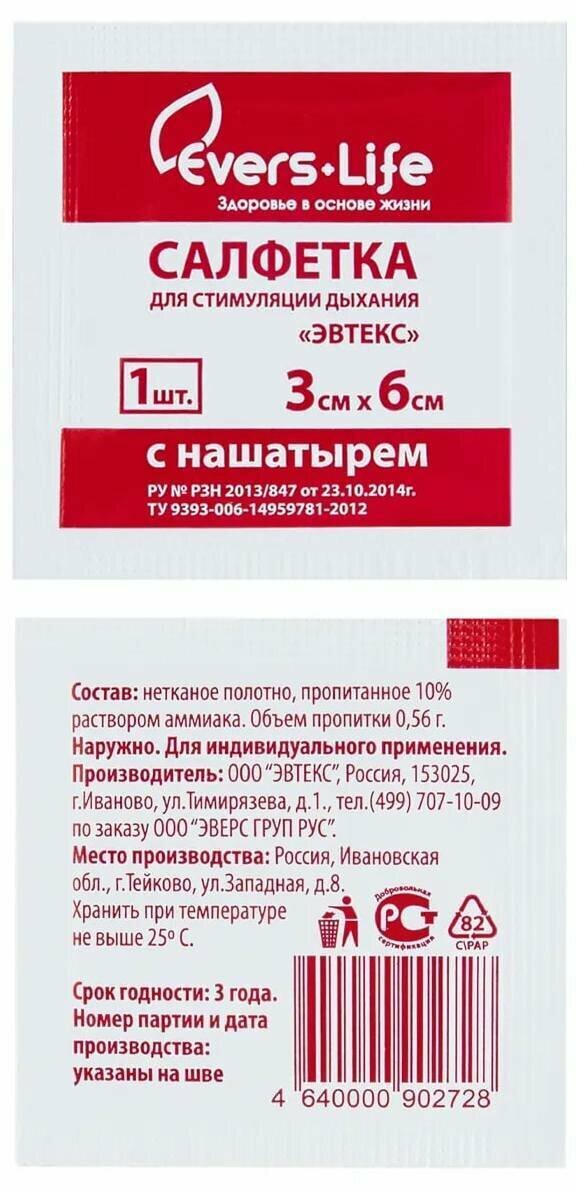 EVERS LIFE/салфетка с нашатырем/стимуляция дыхания/тактическая медицина/10 шт/экстренная помощь/лекарство в поход интересное: