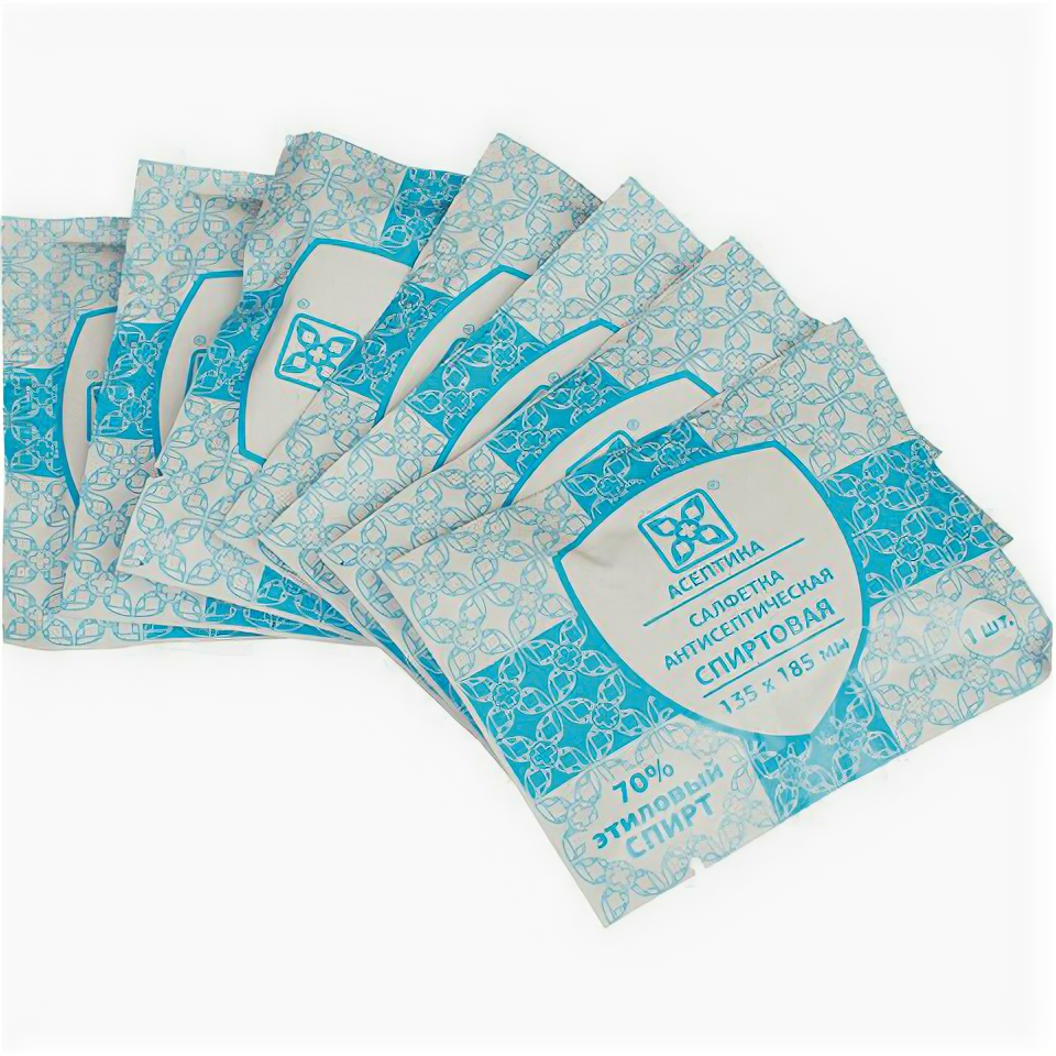 Асептика Спиртовые салфетки антисептические 135x185 мм комплект 7 шт., комплект 5 шт., асептика, короб-подвес