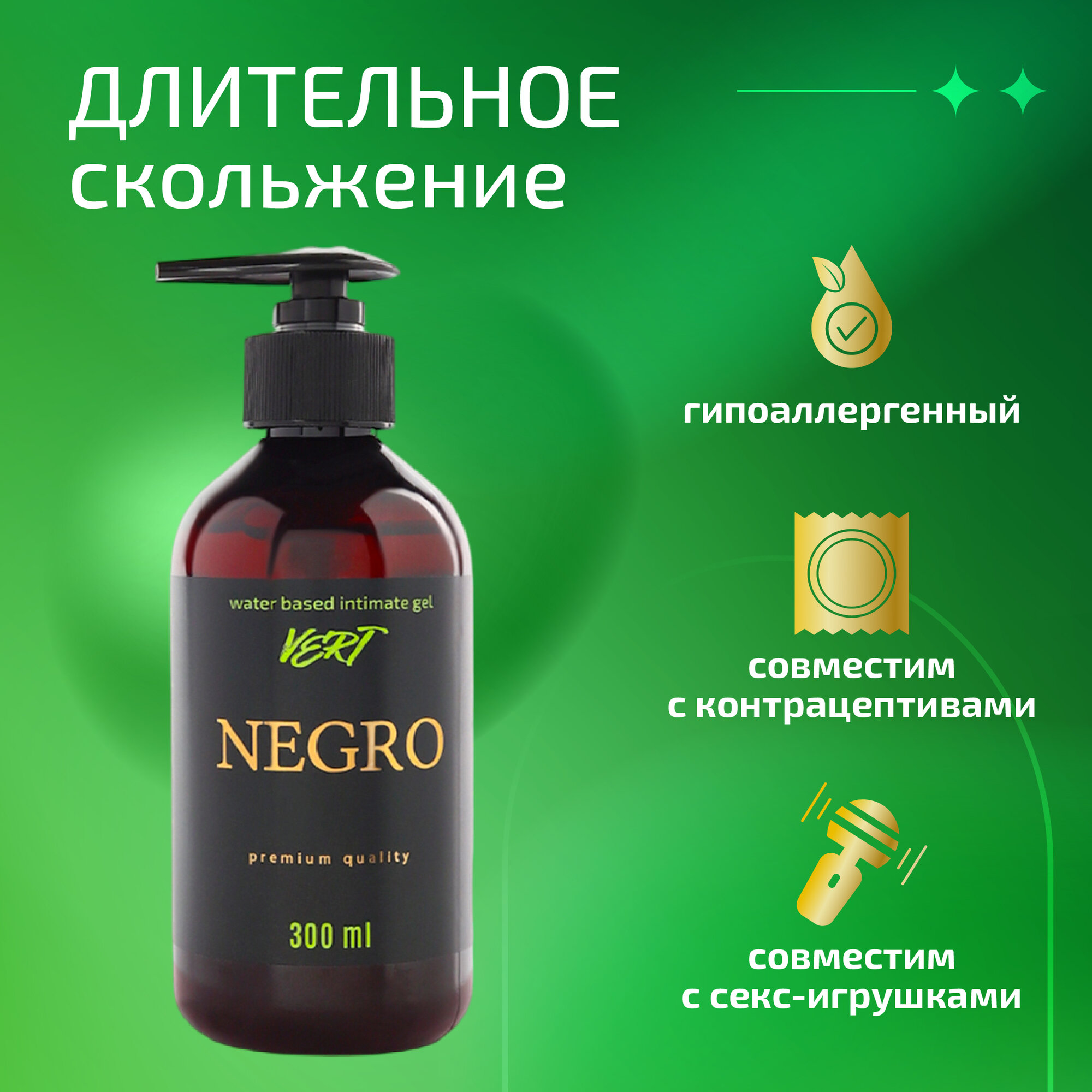 NEGRO.VERT 300 ml Профессиональный интимный лубрикант гель-смазка на водной основе 300 мл. интересное: